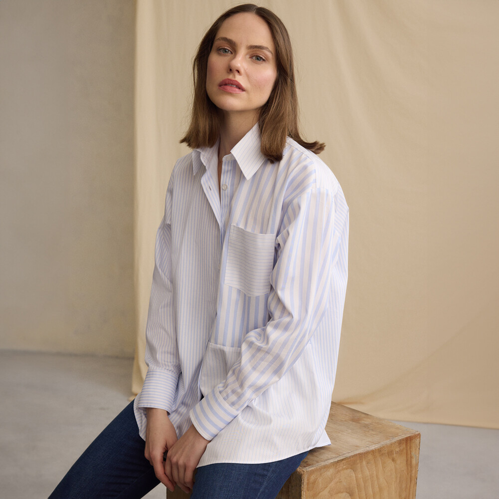 Gelince Haber VerAisha çizgili mavi gömlek, modern çizgili deseni ve şık cebiyle dikkat çekiyor. Farklı renk seçenekleriyle tarzınızı zenginleştirirken, hafif ve nefes alabilen kumaşıyla gün boyu konfor sağlıyor. Hem günlük hem de resmi kombinlerde rahatça kullanabileceğiniz, gardırobunuzun vazgeçilmez parçalarından biri olacak.