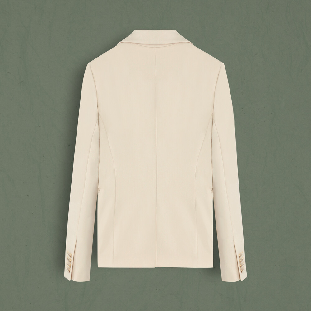 Alena bej ceket, her kadının gardırobunun olmazsa olmazı. İki farklı rengi olan tek düğmeli ceketi, aynı kumaştan olan pantolonu kombinleyebilirsiniz.