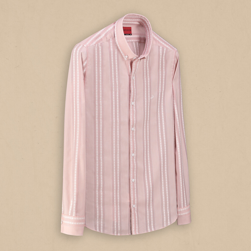 Gelince Haber VerGoias desenli gül kurusu gömlek, şıklığı ve özgün tarzıyla öne çıkıyor. Düğmeli yakasıyla klasik bir dokunuş kazanıyor. Farklı renk seçenekleriyle her zevke hitap ediyor. Hem iş hem de günlük kombinlerinizde tercih edebileceğiniz şık tasarım.