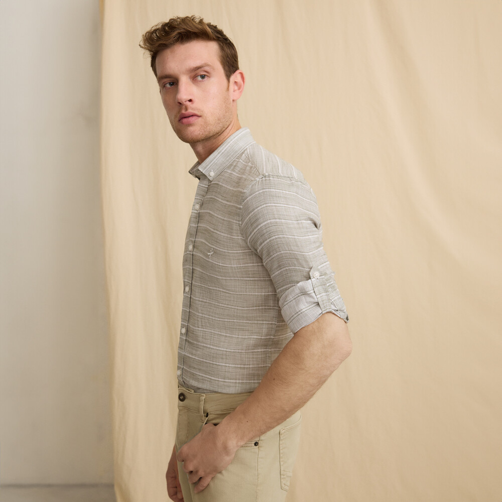 Gelince Haber VerCarina uzun kol haki gömlek, zarif çizgili deseni ve farklı renk seçenekleri ile dikkat çekiyor. Kaliteli kumaşı ve modern kesimi sayesinde hem şık hem de rahat bir kullanım sunar. İşten özel davetlere kadar her ortamda stilinizi yansıtır.