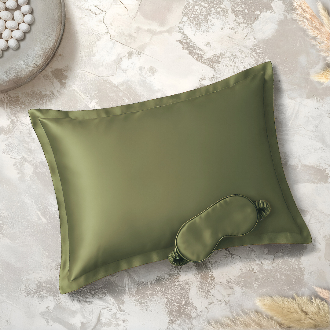 Clio İpek Yastık Kılıfı ve Göz Bandı Yeşil