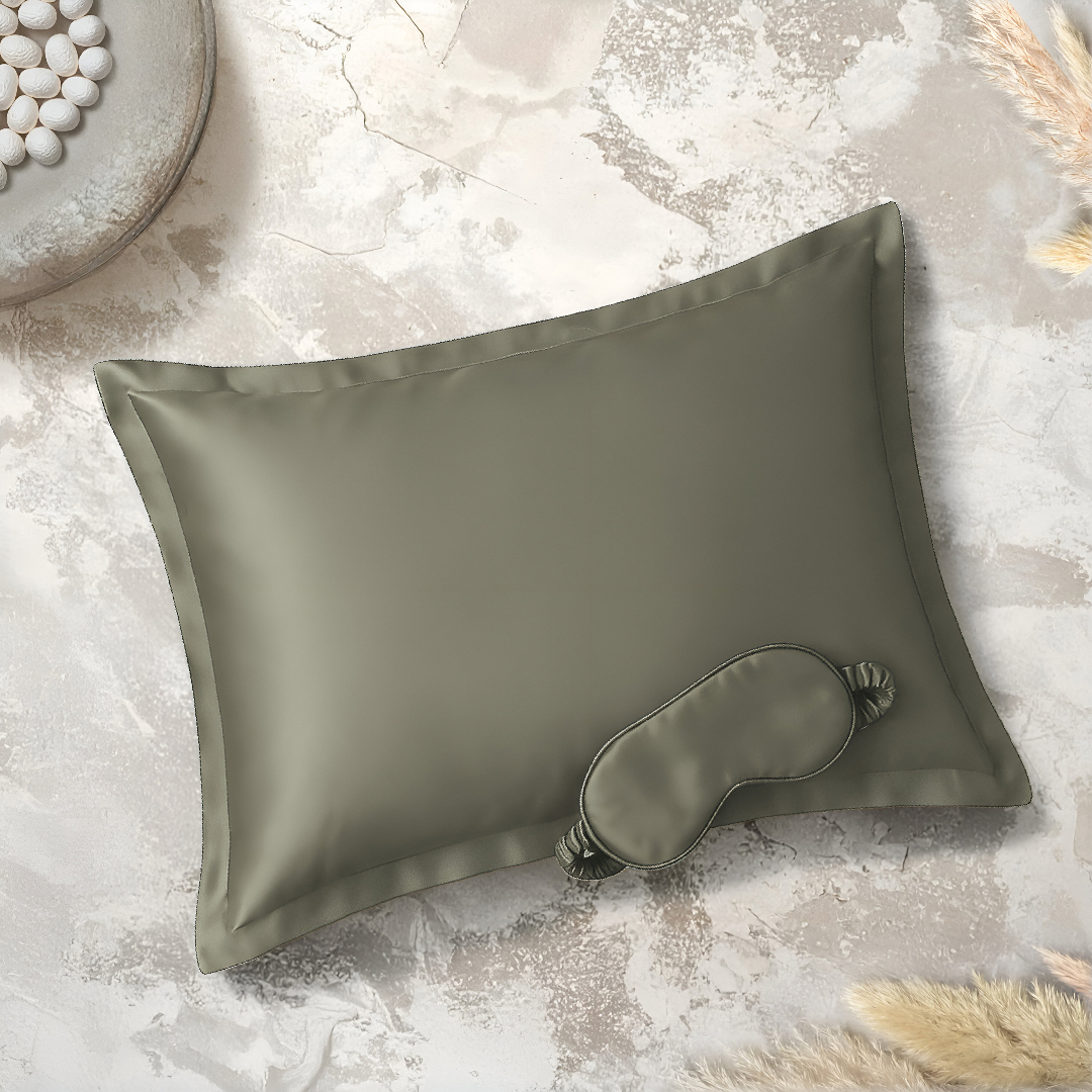Clio İpek Yastık Kılıfı ve Göz Bandı Gri
