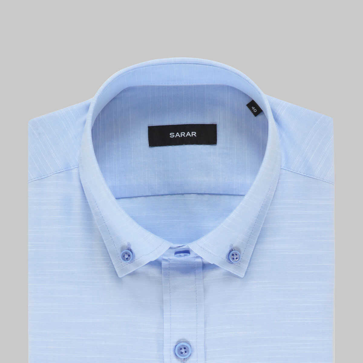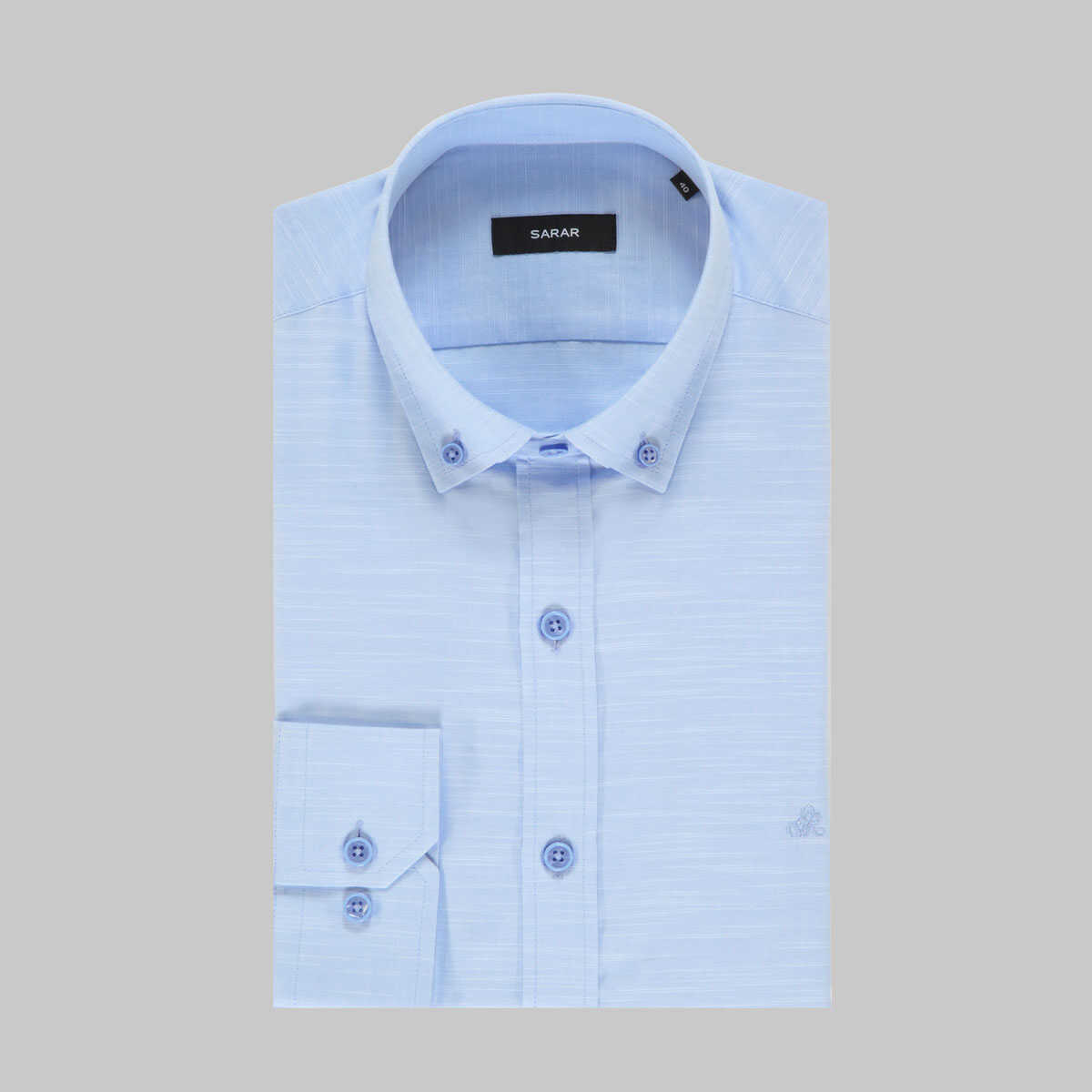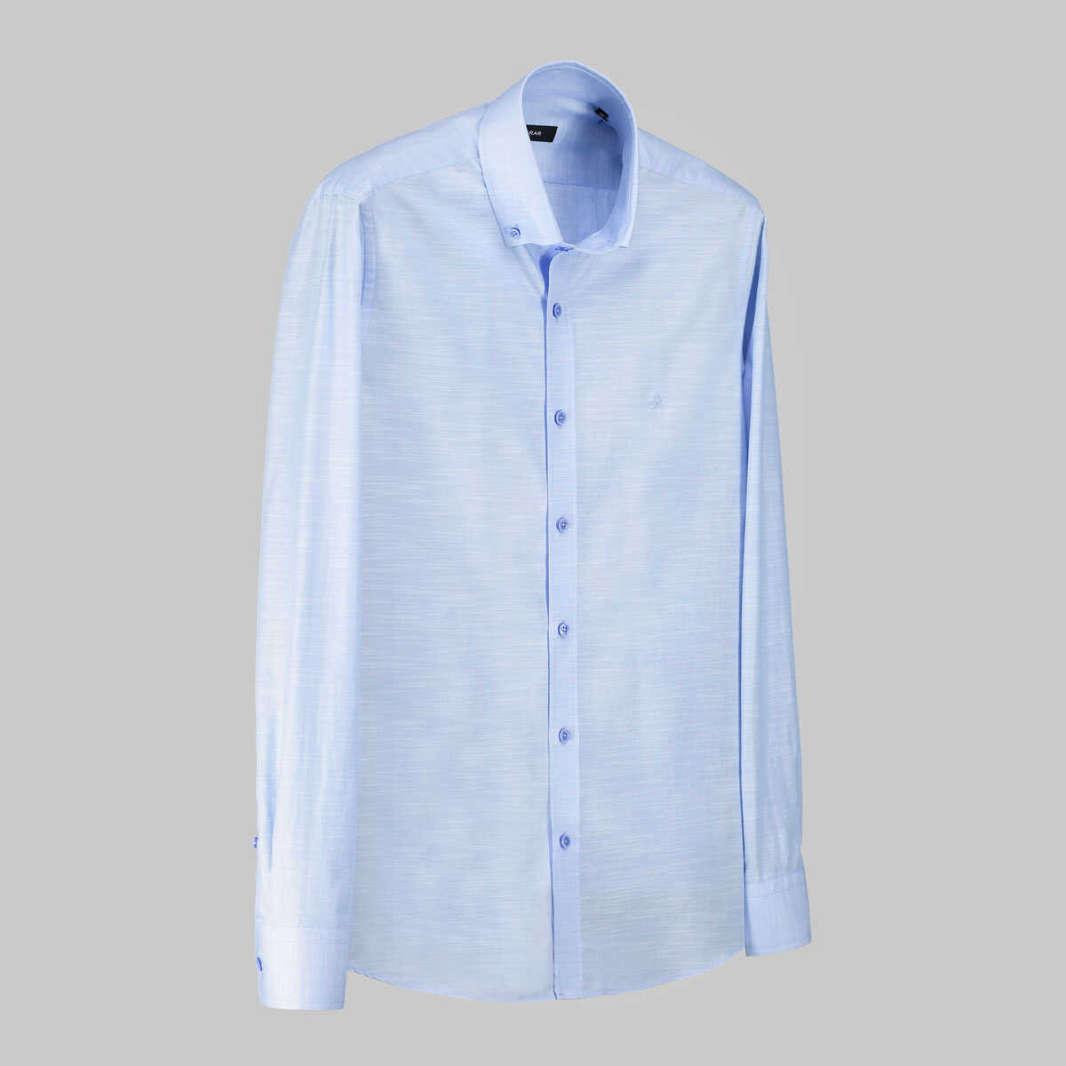 Sarar Eleta mavi gömlek koleksiyonunuzda modern ve klasik bir kombin oluşturmanıza yardımcı olur. Yaka düğmeli, pamuk kumaştan üretilen kendinden desenli gömlek ile ayrıcalığı hissedin.