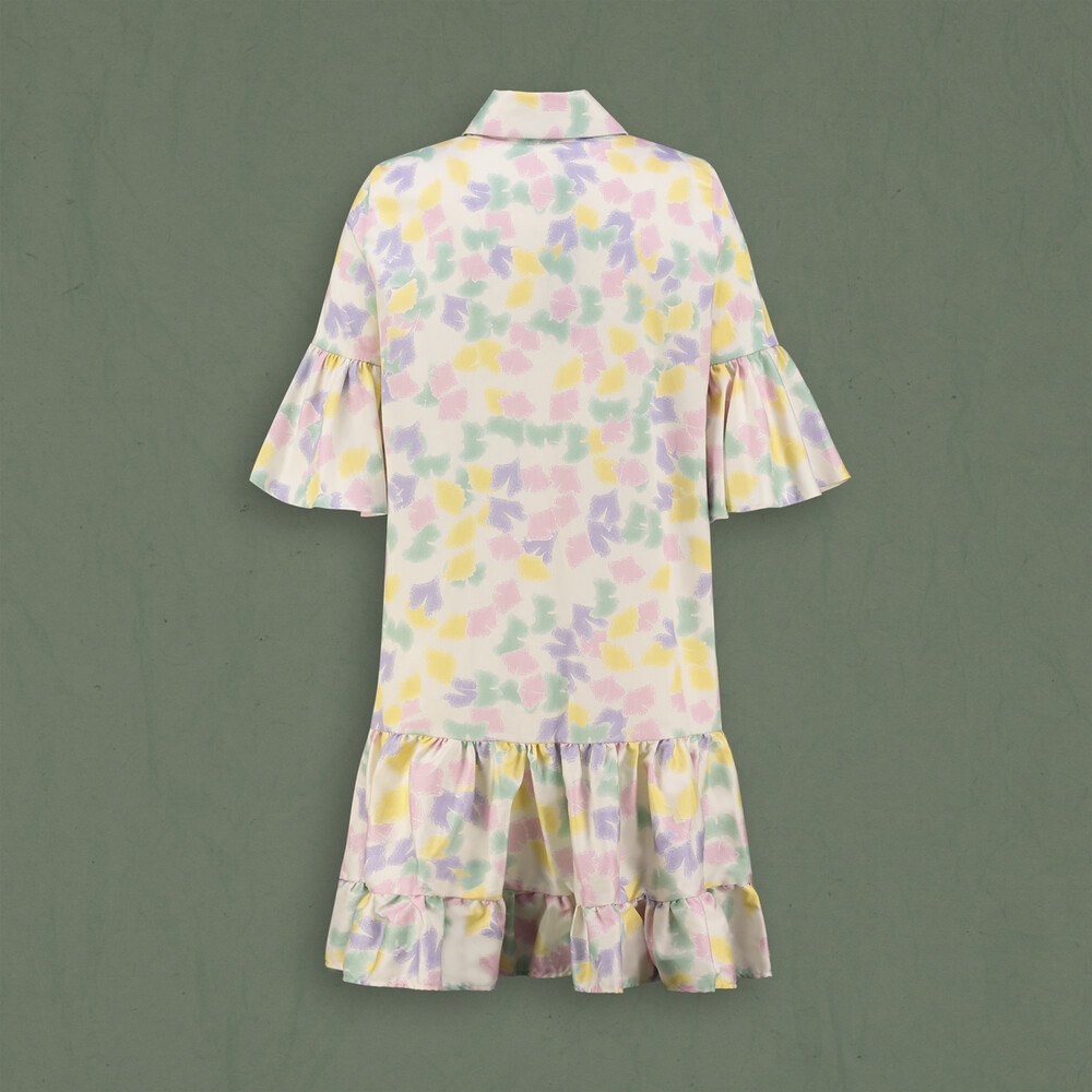 Gelince Haber VerFiorella pembe desenli elbise, canlı renkleriyle enerjik ve göz alıcı bir stil sunuyor. Pamuklu kumaşı sayesinde hafif ve rahat bir kullanım sağlayan desenli elbise, fırfırlı etek ucu detayıyla hareketli bir dokunuş katar. Hem günlük hem de özel anlarda şıklığınızı vurgulayan ideal bir parçadır.