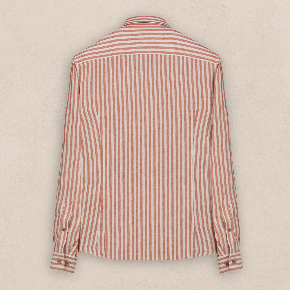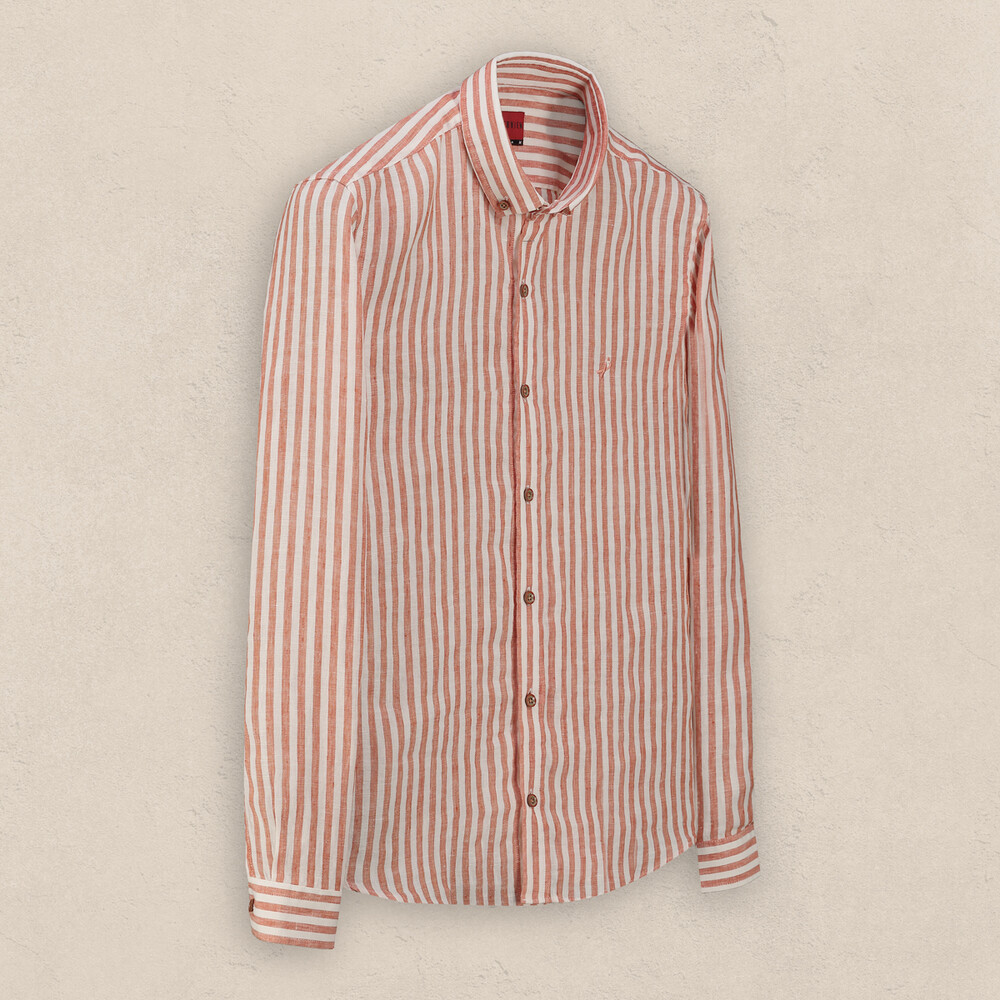 Goias turuncu keten gömlek, keten kumaşıyla her mevsim rahat hissetmenizi sağlıyor. Çizgili deseniyle kullanışlı modeller arasında yer alır. Gardırobunuza ekleyerek, günlük veya daha resmi durumlarda kullanabilirsiniz.