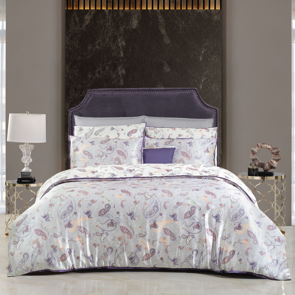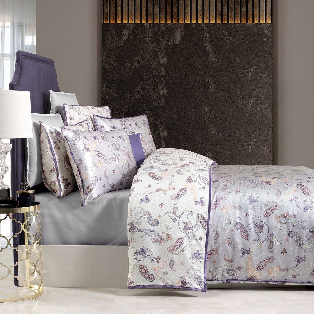 Ikarus %100 Ipek Saten Çift Kişilik Lila Nevresim Takımı