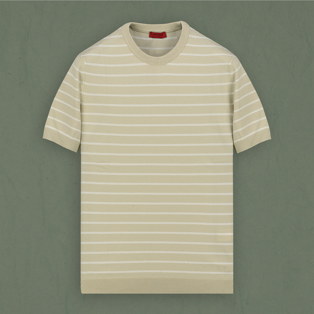 Gelince Haber VerBisiklet yaka kısa kol bej çizgili triko, şıklığı ve rahatlığı bir araya getiriyor! Rengi ve çizgili deseniyle modern bir görünüm sunarken, yumuşak dokusuyla da gün boyu konfor sağlıyor. Hem günlük kullanım hem de özel günler için mükemmel bir tasarım.