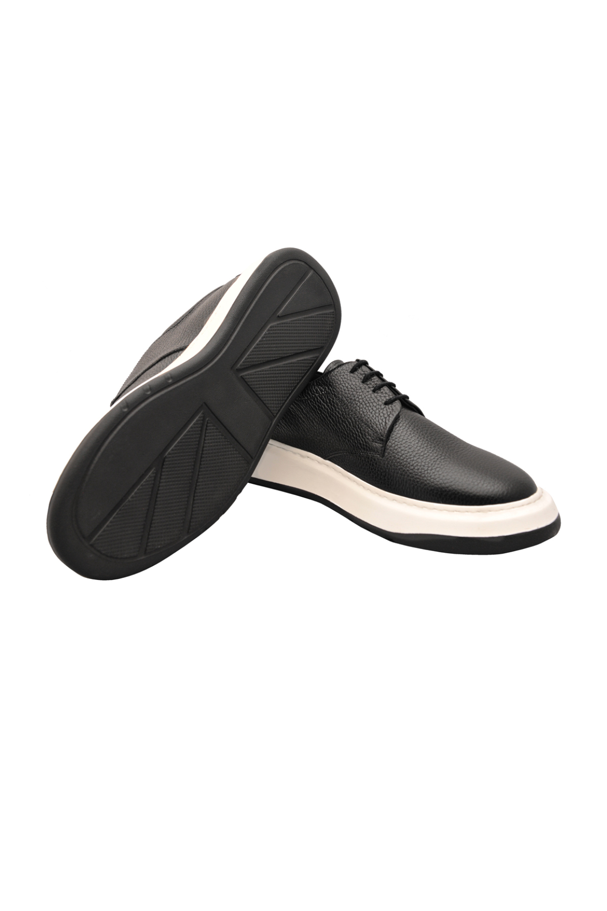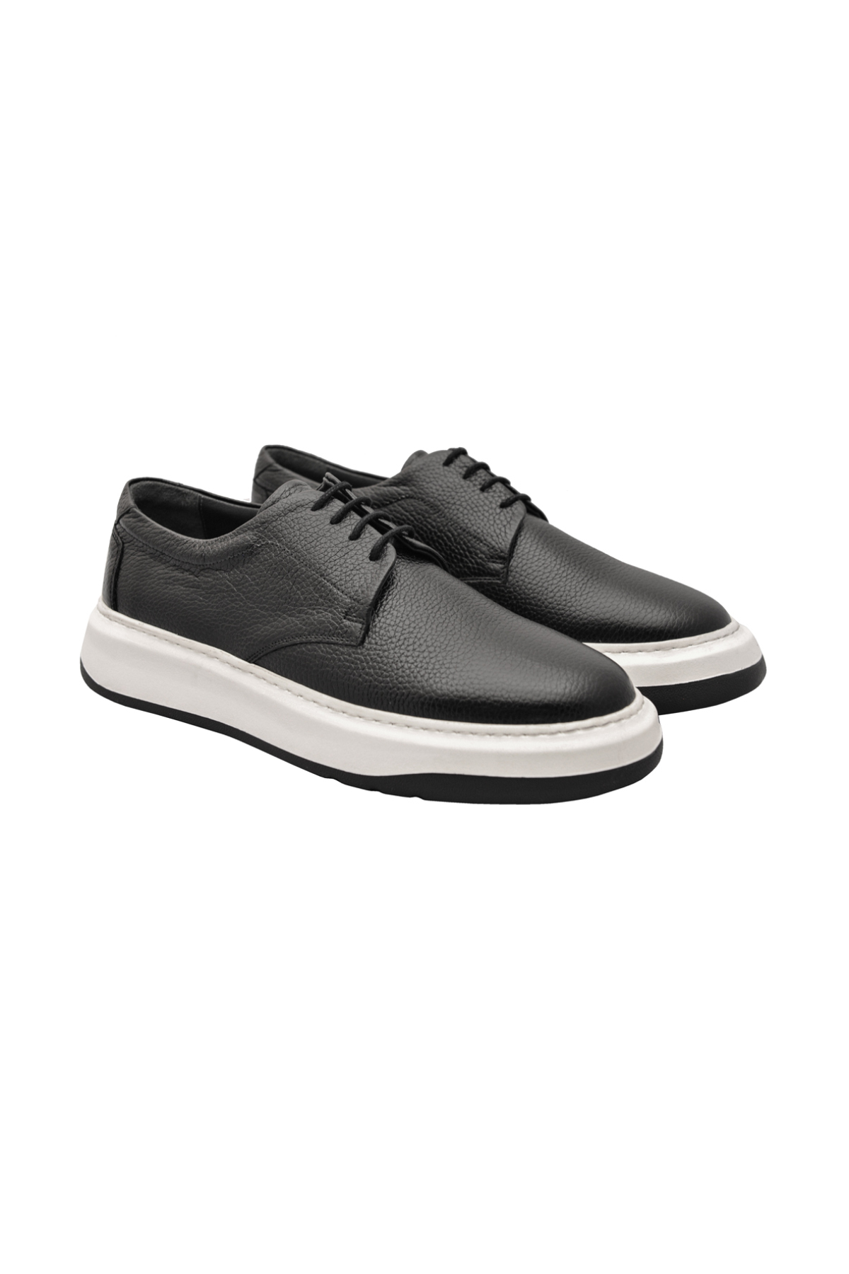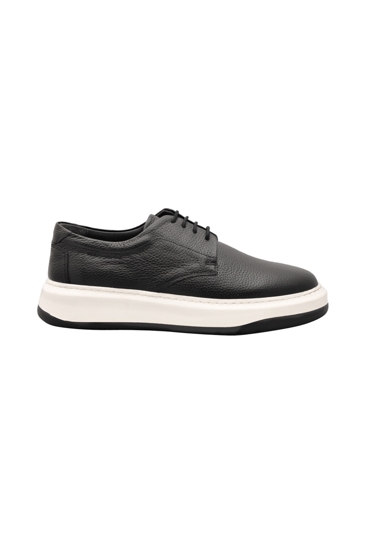Gelince Haber VerEva taban siyah ayakkabı, beyaz tabanı ve deri yapısıyla şıklığınızı ön plana çıkarıyor. Bağcıklı yapısı ve nefes aldıran delikleriyle konforu ve rahatlığı bir araya getiriyor. Hem günlük kullanım hem de sportif şıklık için ideal bir tercihtir.
