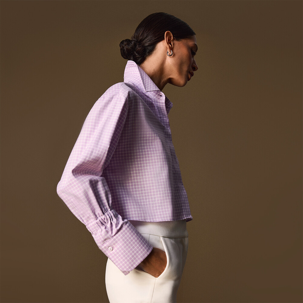 Gelince Haber VerKassel lila uzun kol gömlek, kareli deseni ve kısa bel tasarımıyla dinamik bir tarz sunuyor. Modern kesimi sayesinde pantolon ve etek kombinlerine şıklık katıyor. Göz alıcı lila tonu, günlük ve özel davetlerde farkınızı ortaya çıkarıyor.