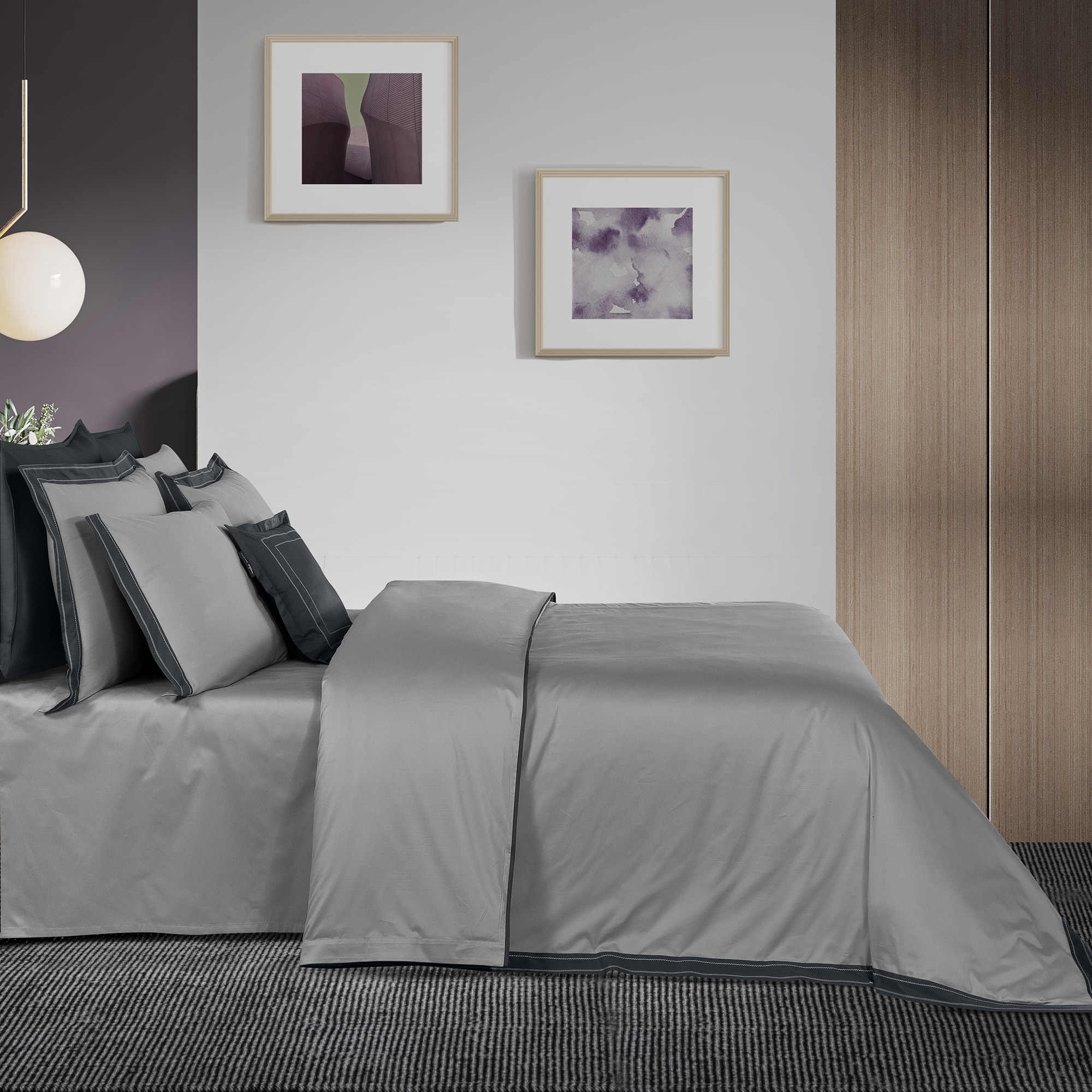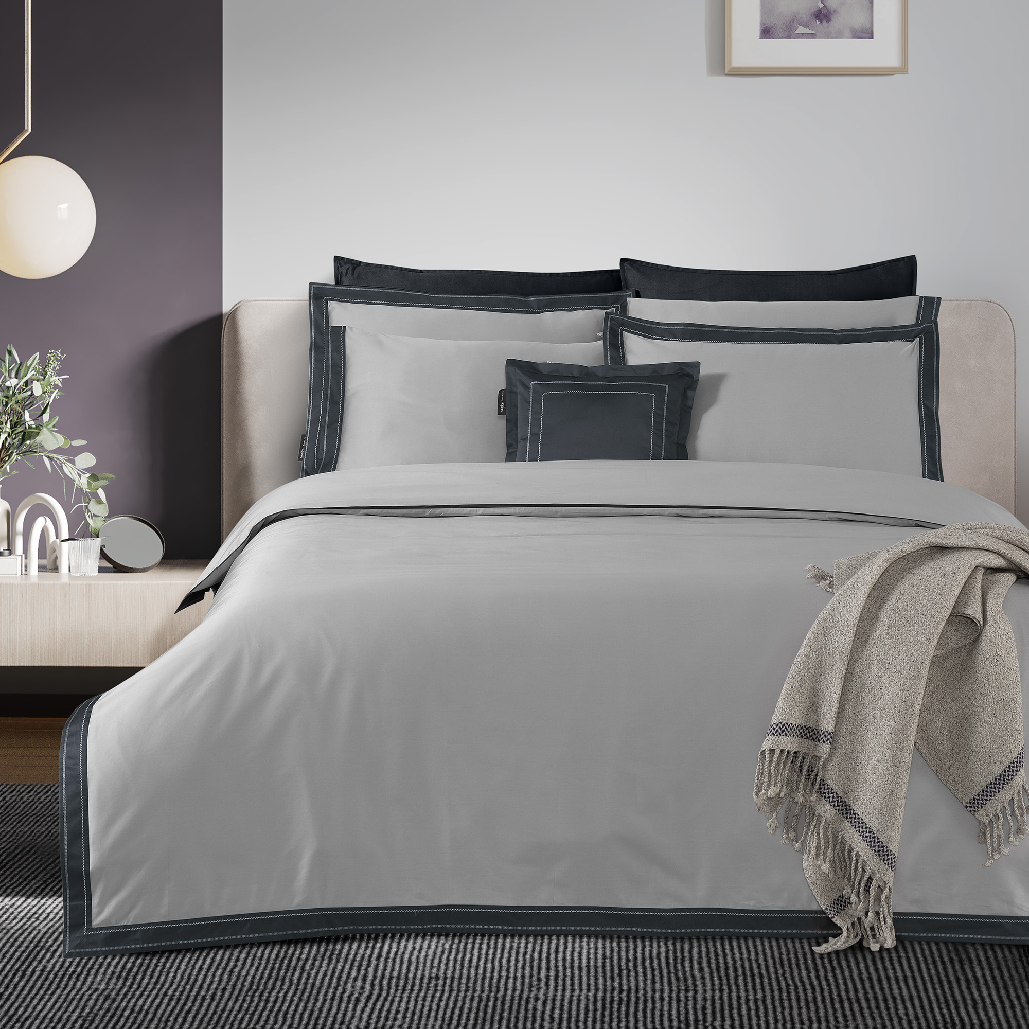 Layana Pamuk Saten Nevresim Takımı Çift Kişilik Gri - 1