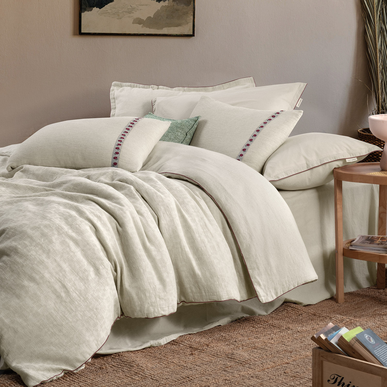 Gelince Haber VerKumaş Kalitesi; Jakarlı, yıkamalı nevresim takımı.Keten- Pamuk. Yastık tek kenarında aksesuar detayı. Nevresimde biye detayı.