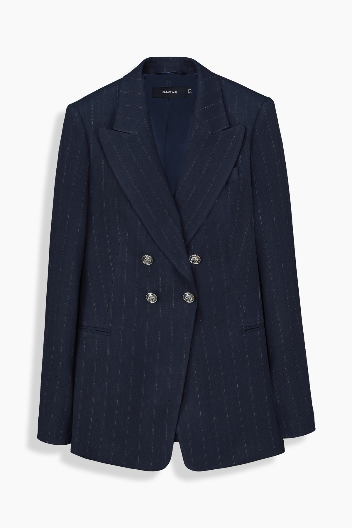 Mara Kruvaze Koyu Lacivert Ceket, ince çizgili deseniyle feminen gücü ve zarafeti bir araya getiriyor. Kruvaze kesimi sayesinde kusursuz bir duruş sergiliyor ve hem ofis hem de özel davetler için vazgeçilmeziniz oluyor. Bu ceketi ister aynı renk pantolonla takım yapabilir ister SARAR WOMAN denim pantolon ile kombinleyerek casual bir kombin oluşturabilirsiniz.