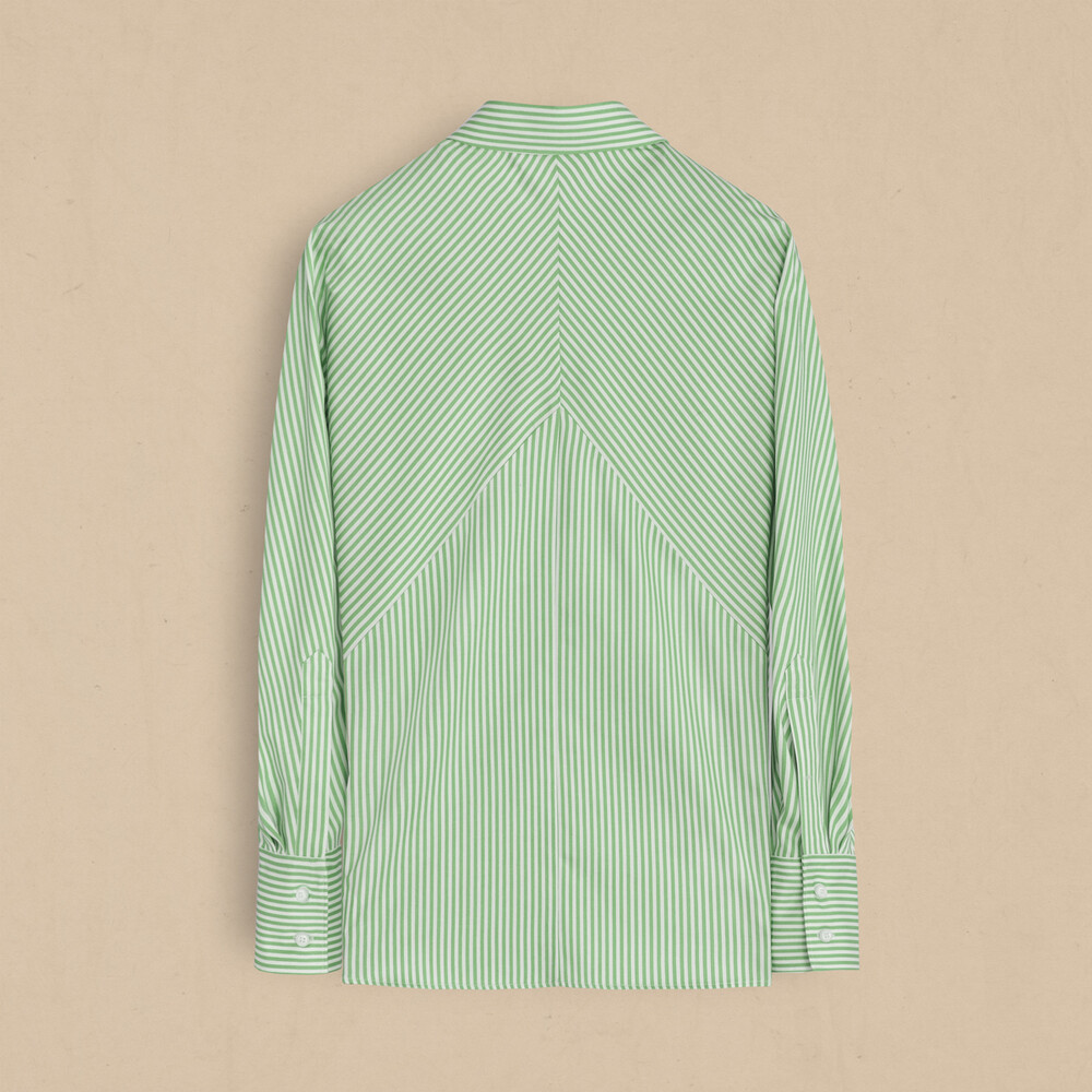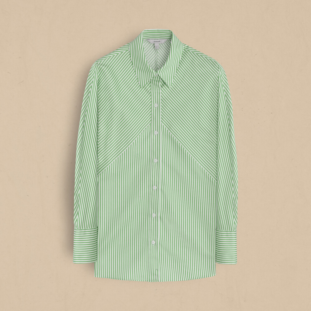 Mira yeşil gömlek, çizgi desenlerinin kalıbı ekseninde cool bir görünüm vadediyor. Gömleği birbirinden farklı birçok kombinde kullanabilirsiniz.