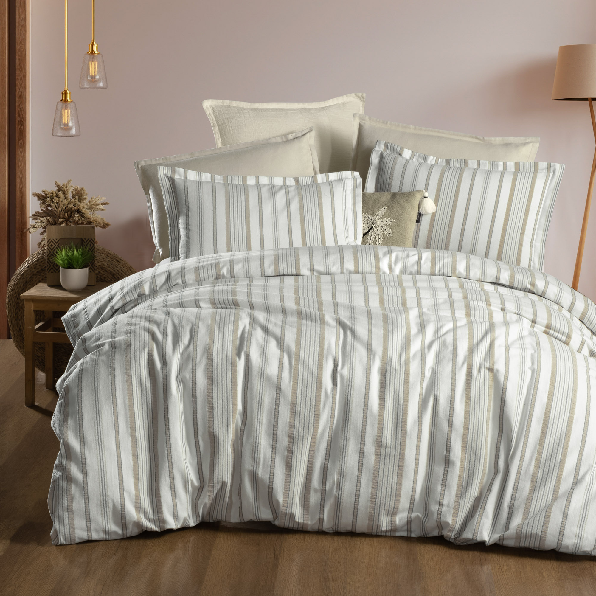 Kumaş Kalitesi;%100 Pamuk flanel, gofreli iplik boyalı nevresim takımı.Yastık kenarlarında oxford dikiş detayı.