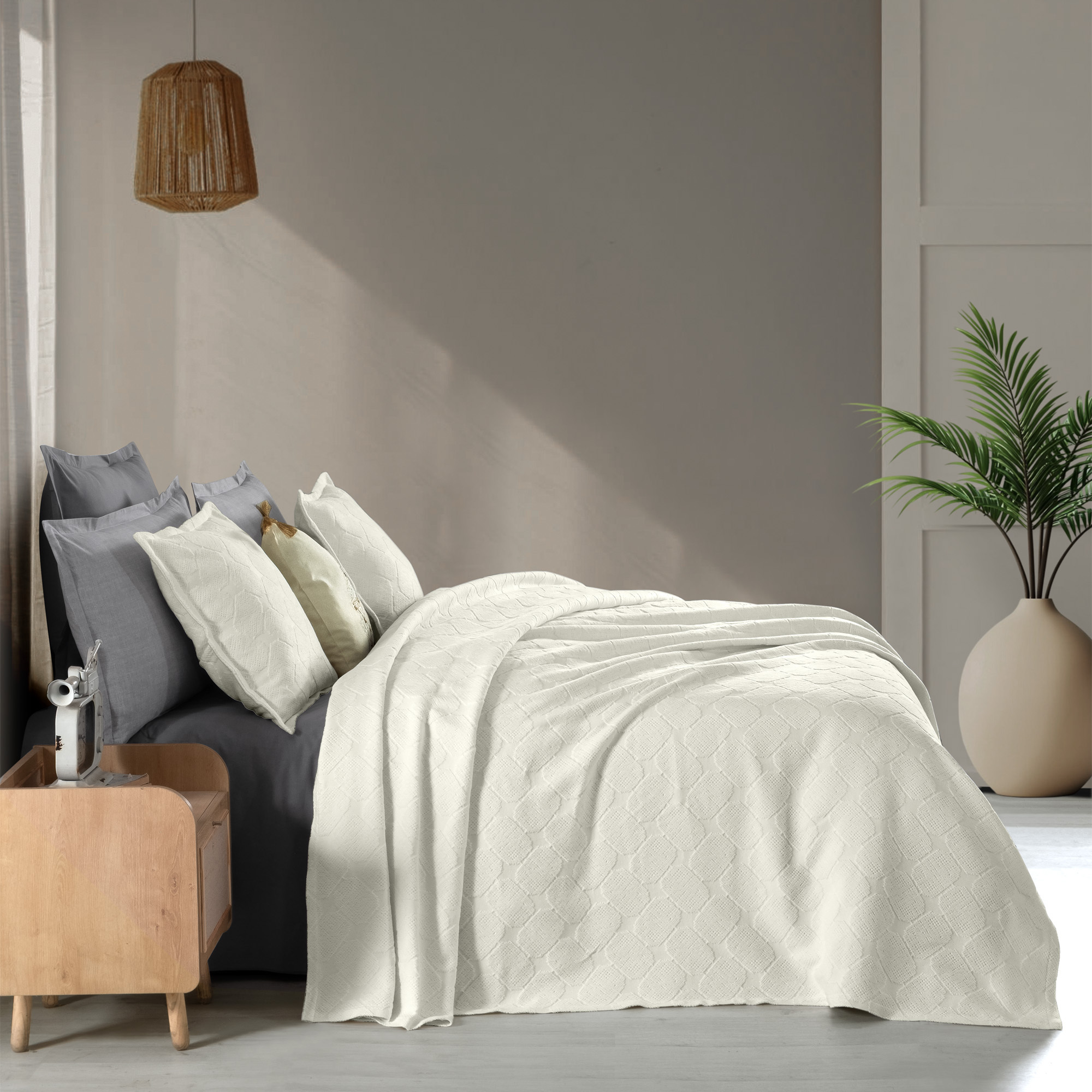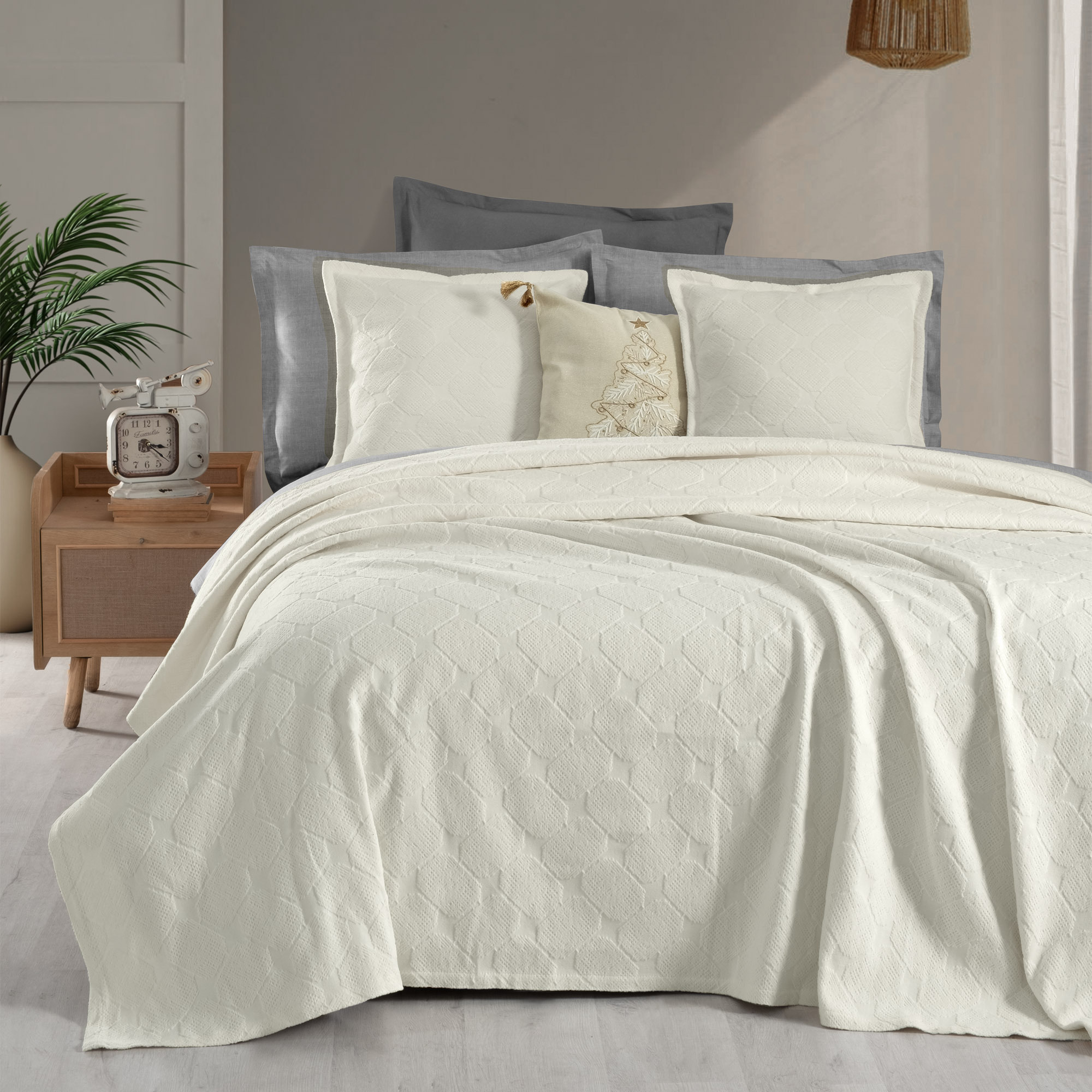 Nerida Yatak Örtüsü Çift Kişilik Ekru