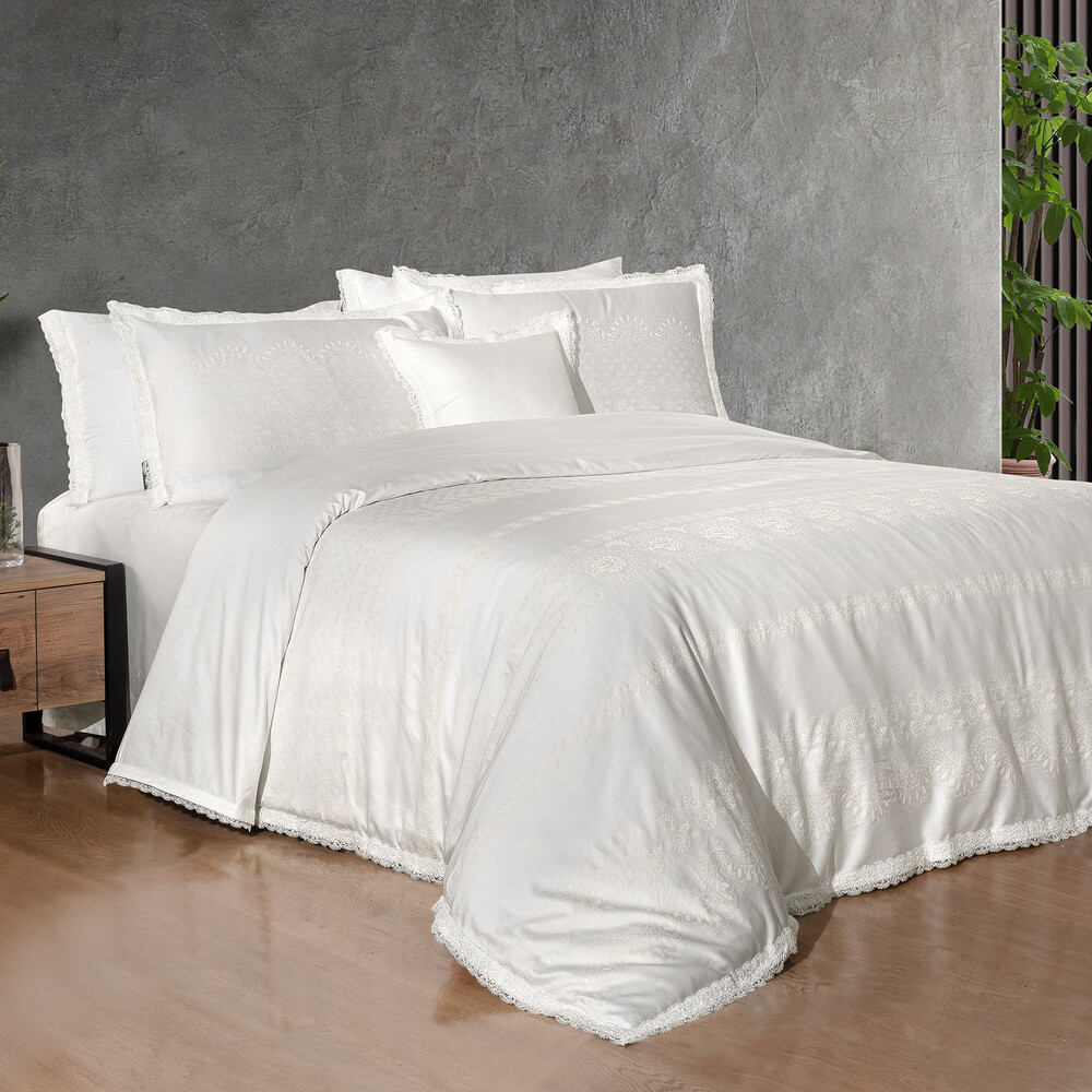Perry Pamuk Saten Nevresim Takımı King Size Beyaz