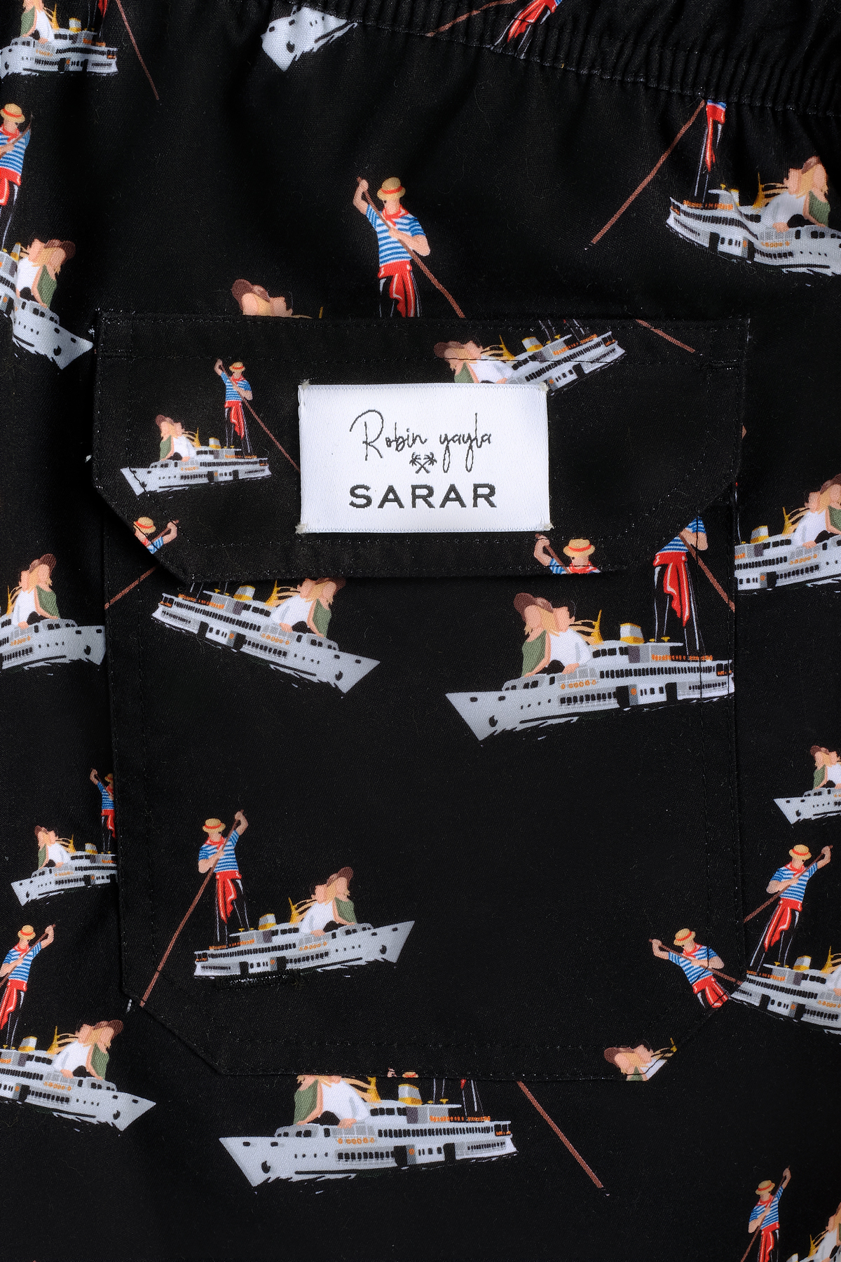 Gelince Haber VerRobin Yayla’nın tasarladığı Pollsum Gondol Desenli Siyah Şort, zarif gondollardan ilham alan sanatsal çizgilerle yaz stiline farklı bir yorum katıyor. Stil sahibi erkekler için şıklık, konfor ve ilhamı bir araya getiren bu tasarım, plaj günlerine şıklık ve estetik katmak üzere özenle hazırlandı.