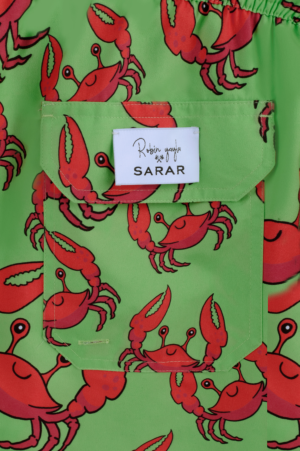 Gelince Haber VerRobin Yayla’nın tasarımıyla hayat bulan Pollsum Yengeç Desenli Yeşil Şort, deniz teması ve renkli detaylarını şıklıkla buluşturuyor. Canlı ve dikkat çekici yengeç motifleri, dinamik çizgilerle harmanlanarak yaz stiline özgünlük katıyor. Hem konfor hem de estetik beklentilerini karşılamak üzere tasarlanan şort, özgün stile önem veren erkekler için şıklık sunuyor.