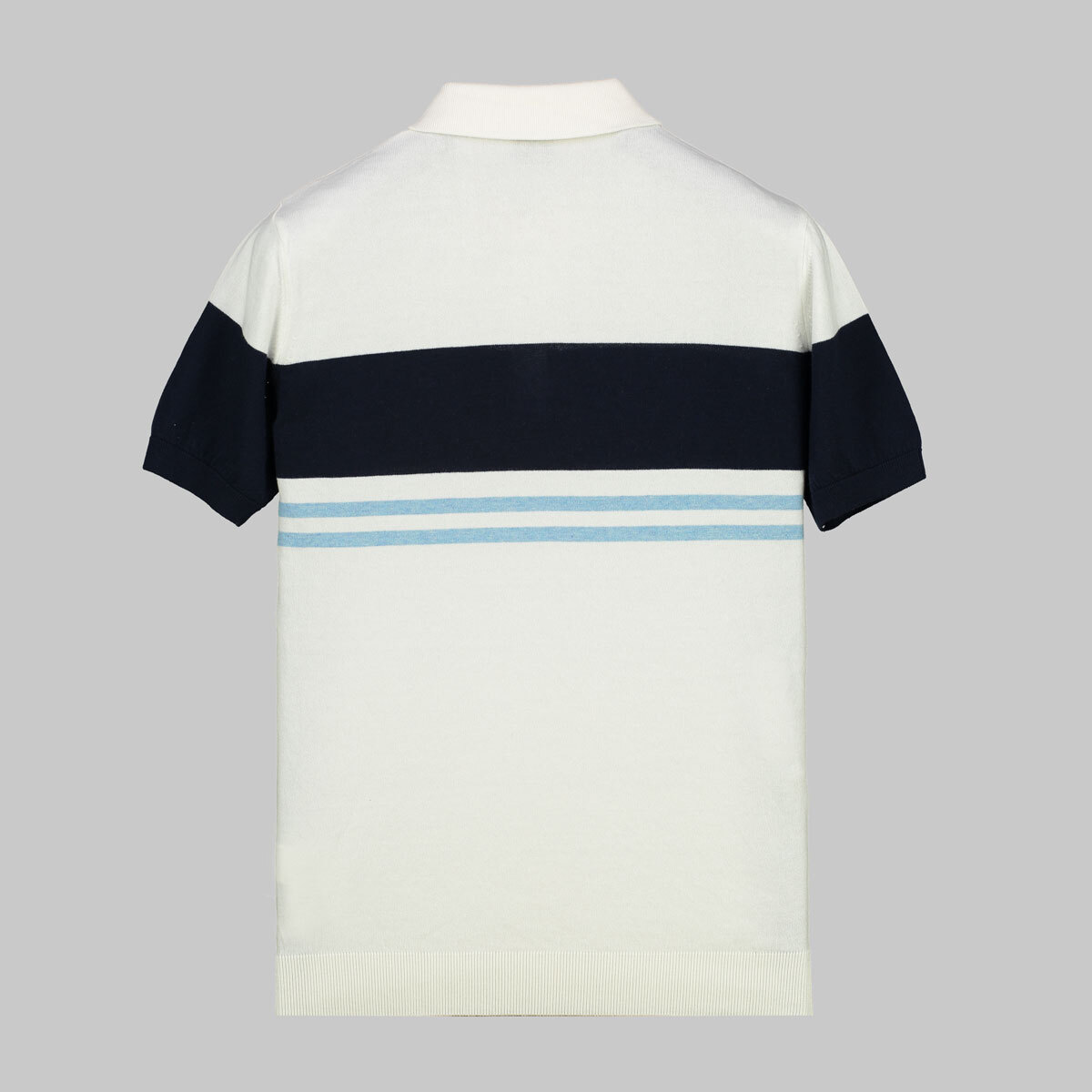 Polo Yaka Pamuklu Beyaz Tişört, pamuklu dokusunun sunduğu konforu modern tasarım detaylarıyla bir araya getirir. Beyaz zemin üzerinde yer alan lacivert bant ve açık mavi çizgi detayları tasarıma hareket kazandırarak dikkat çekici bir stil sunar. Polo yaka ve düğmeli pat formu, klasik giyim anlayışını günlük kullanımın rahatlığıyla buluşturur. Günlük şehir yaşamından hafta sonu kombinlerine kadar farklı stillerle kolayca uyum sağlayan bir parça olarak öne çıkar.
