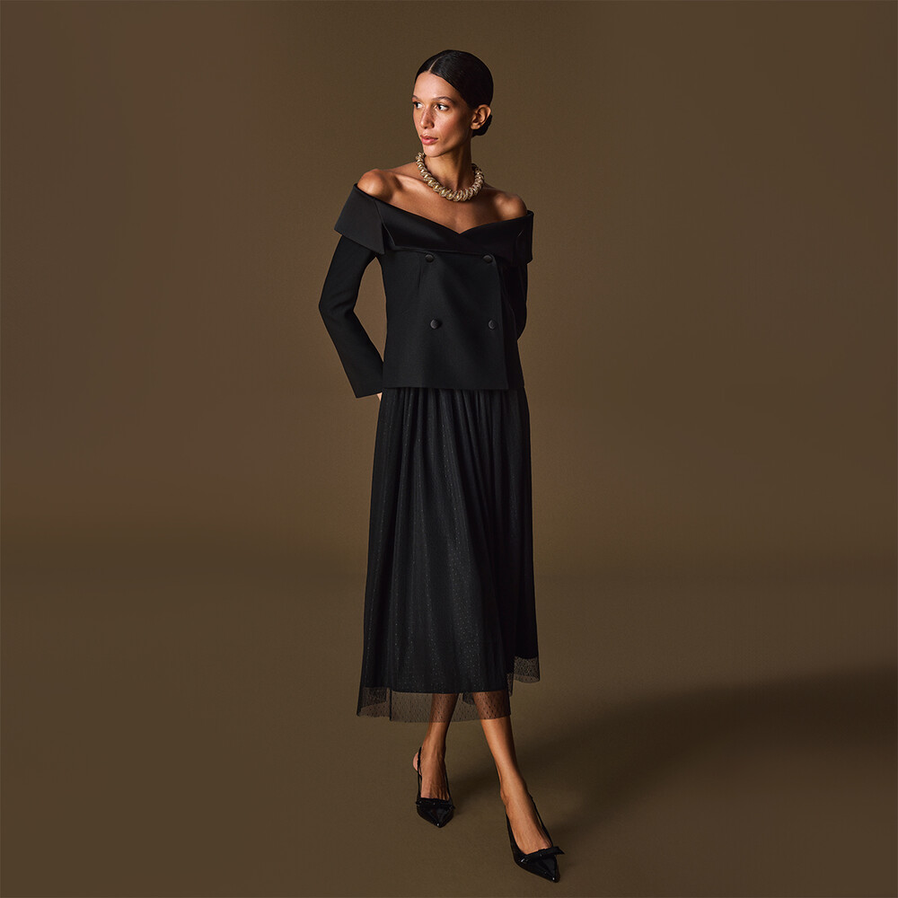 Blair siyah ceket, zarif ve dikkat çekici yaka tasarımıyla öne çıkıyor. Şık kesimi ve modeli sayesinde hem iş hem de özel davetlerde şıklığınızı tamamlar. Modern ve sofistike tasarımı ile her ortamda fark yaratabilirsiniz.