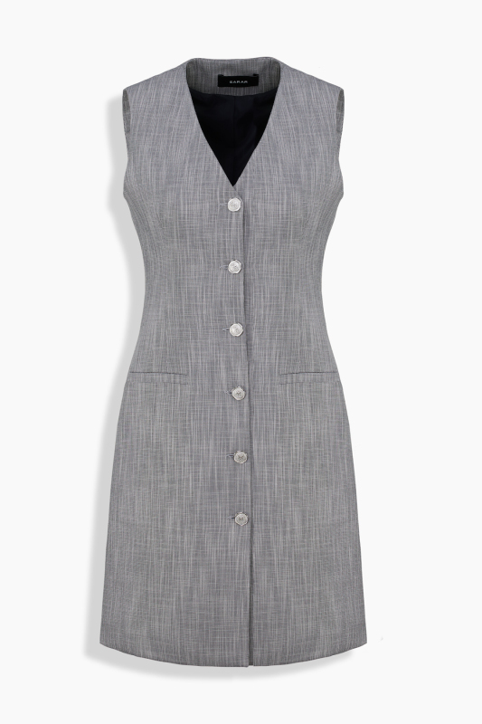 Monets Gri Elbise, kolsuz tasarımı ve V yaka kesimiyle zarif bir stil sunuyor. Önde yer alan düğme detayları, elbiseye modern ve şık bir hava katıyor. Hem günlük kullanımda hem de özel anlarda sade şıklığı öne çıkarıyor.