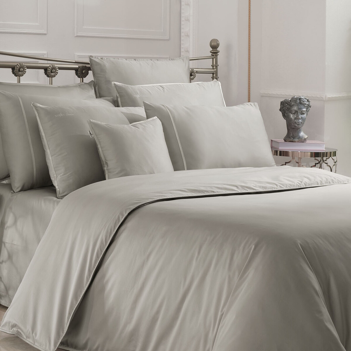 İpeksi parlaklık ve lüks dokunuşlar... Zamansız renkler ve zarif detaylar... 500tc kumaş kalitesi ile SAREV 'Sartorıa' serisinde konforu evinizde yaşayın ve size değerli olduğunuzu hissettirelim.