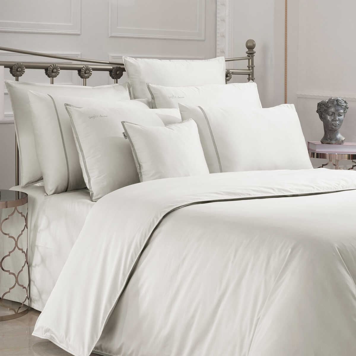 İpeksi parlaklık ve lüks dokunuşlar... Zamansız renkler ve zarif detaylar... 500tc kumaş kalitesi ile SAREV 'Sartorıa' serisinde konforu evinizde yaşayın ve size değerli olduğunuzu hissettirelim.