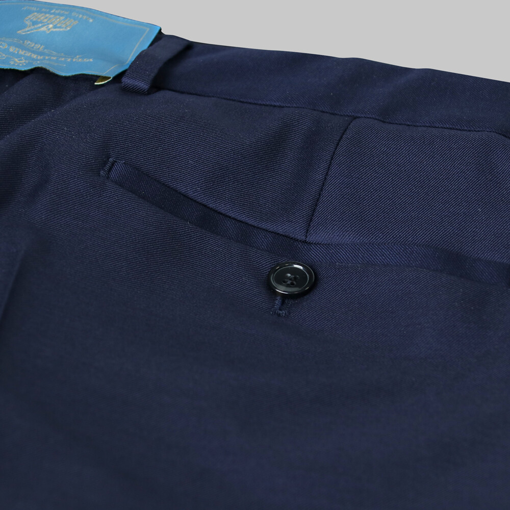 Erkek giyiminin değişmez parçaları klasik pantolonlar çeşitli modelleriyle Sarar'da. Saxon koyu lacivert kumaş pantolon, yüksek kaliteli kumaşı sayesinde stil ile konforu birleştiriyor.