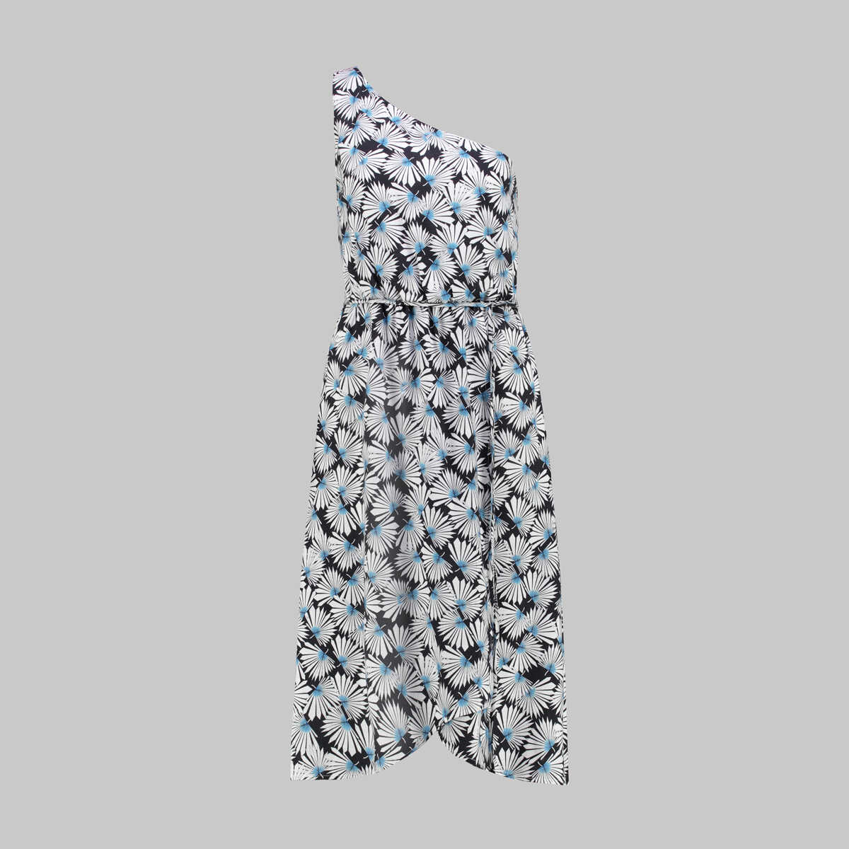 Silvana çiçek desenli siyah elbise ile modern stilinizi ön plana çıkaracaksınız. Tek omuz, asimetrik etekleriyle kusursuz tasarım.