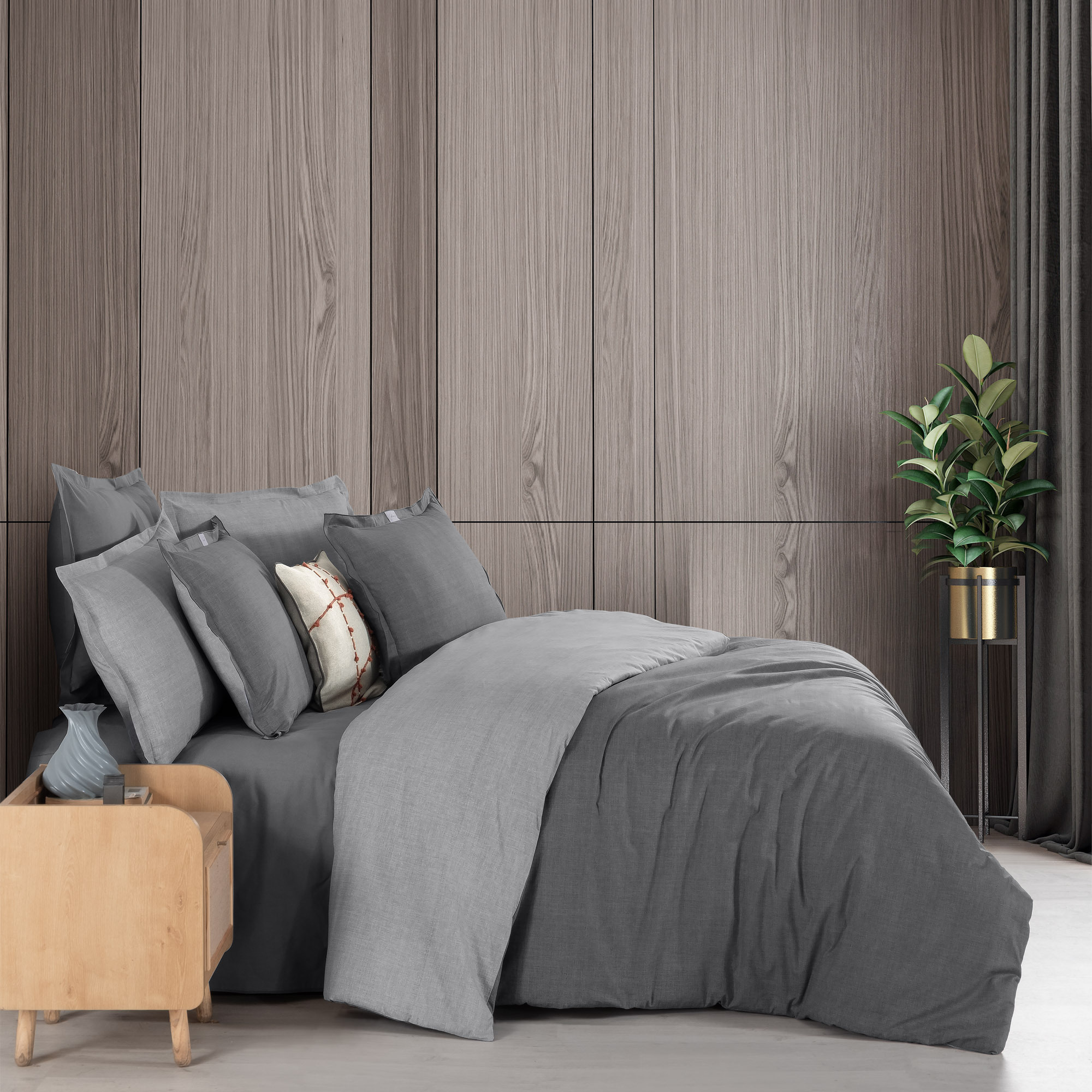 Solo Tone Ranforce Nevresim Takımı Çift Kişilik Gri