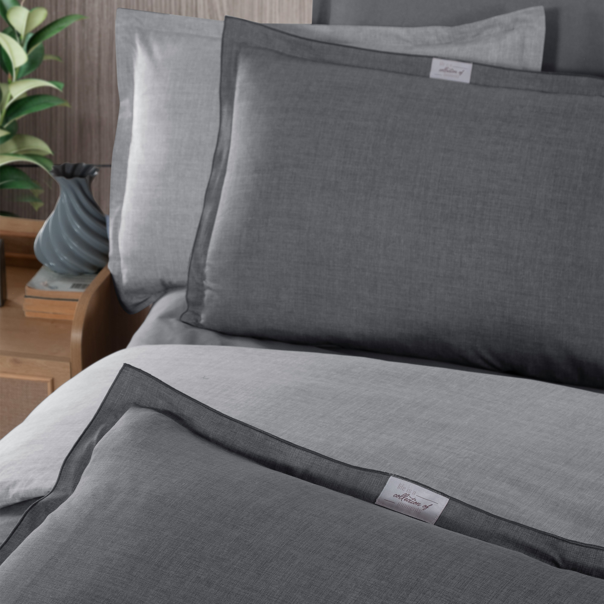 Solo Tone Ranforce Nevresim Takımı Çift Kişilik Gri - 1