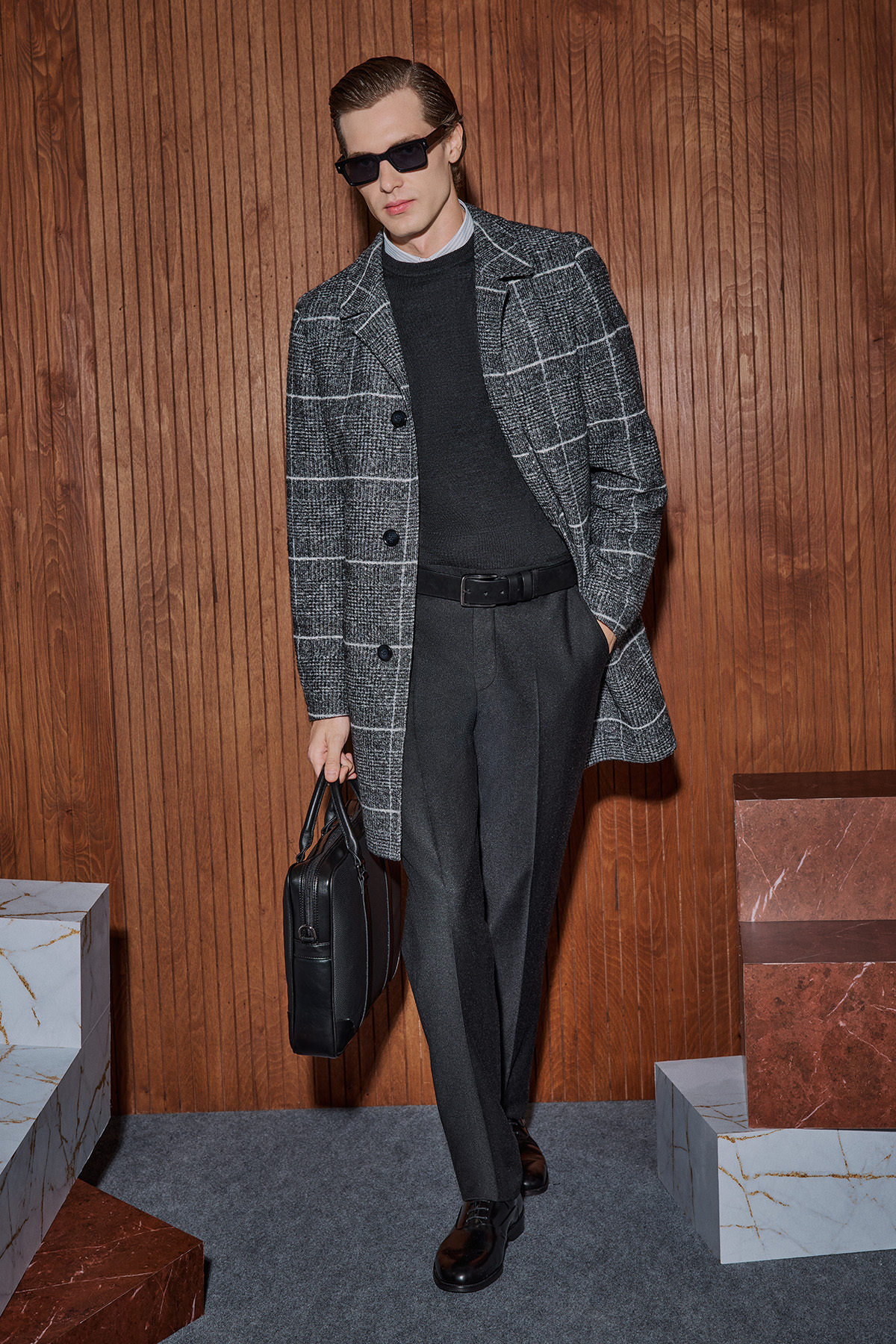 Tasigo Ekose Antrasit Kaban, antrasit rengi klasik ekose deseniyle birleştirerek dış giyimde sofistike ve çarpıcı bir duruş sergiliyor. Kaliteli kumaşı sayesinde soğuk havalarda üstün koruma sağlıyor. Üzerinize giyeceğiniz düz renkli triko ile mükemmel bir uyum yakalayabilirsiniz. Bu şık kabanı siyah veya lacivert pantolonlar ve deri evrak çantası ile birleştirerek, ofis ve iş seyahatlerinizde karizmatik ve profesyonel bir görünüm elde edebilirsiniz.