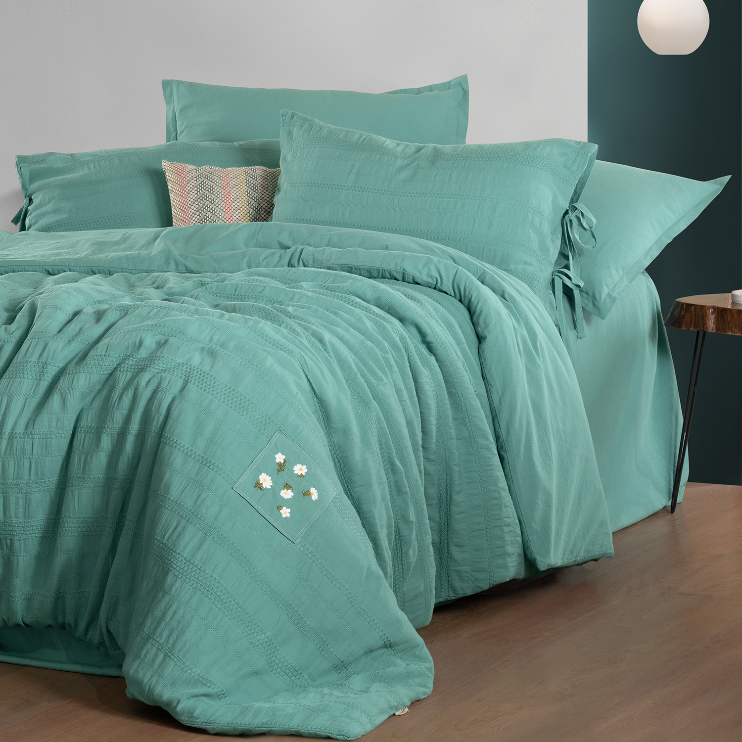 Kumaş Kalitesi;%100 Pamuk, jakarlı, yıkamalı nevresim takımı.Yastık tek kenarında bağcık detayı.Nevresim ön yüzünde nakış aplike detayı.