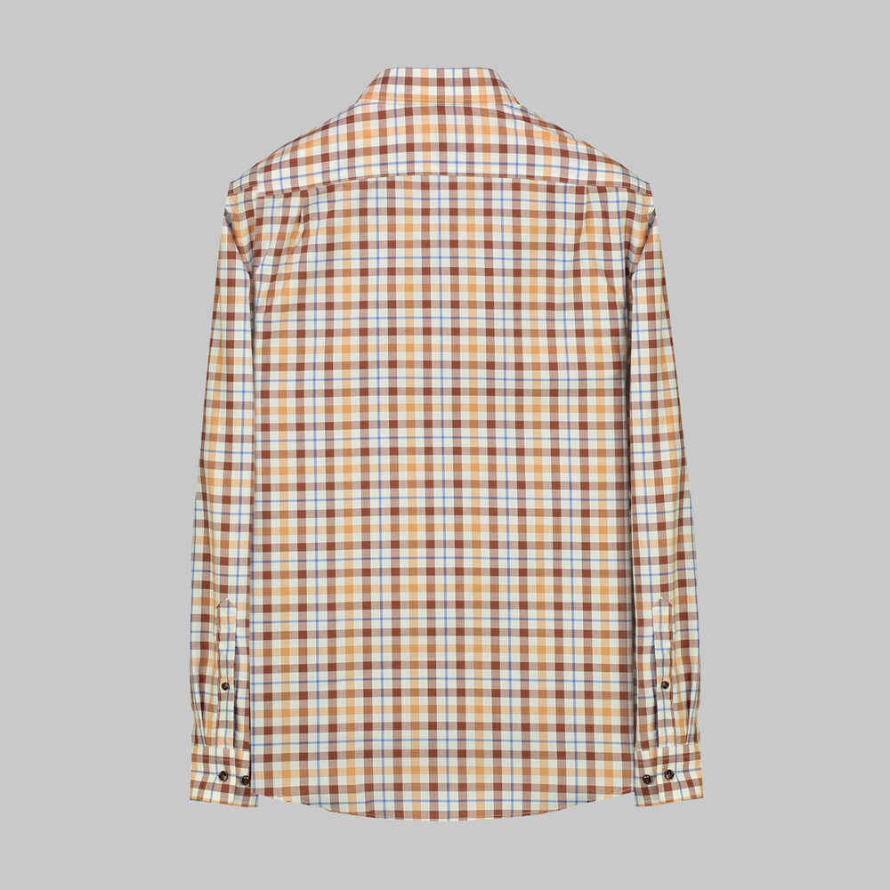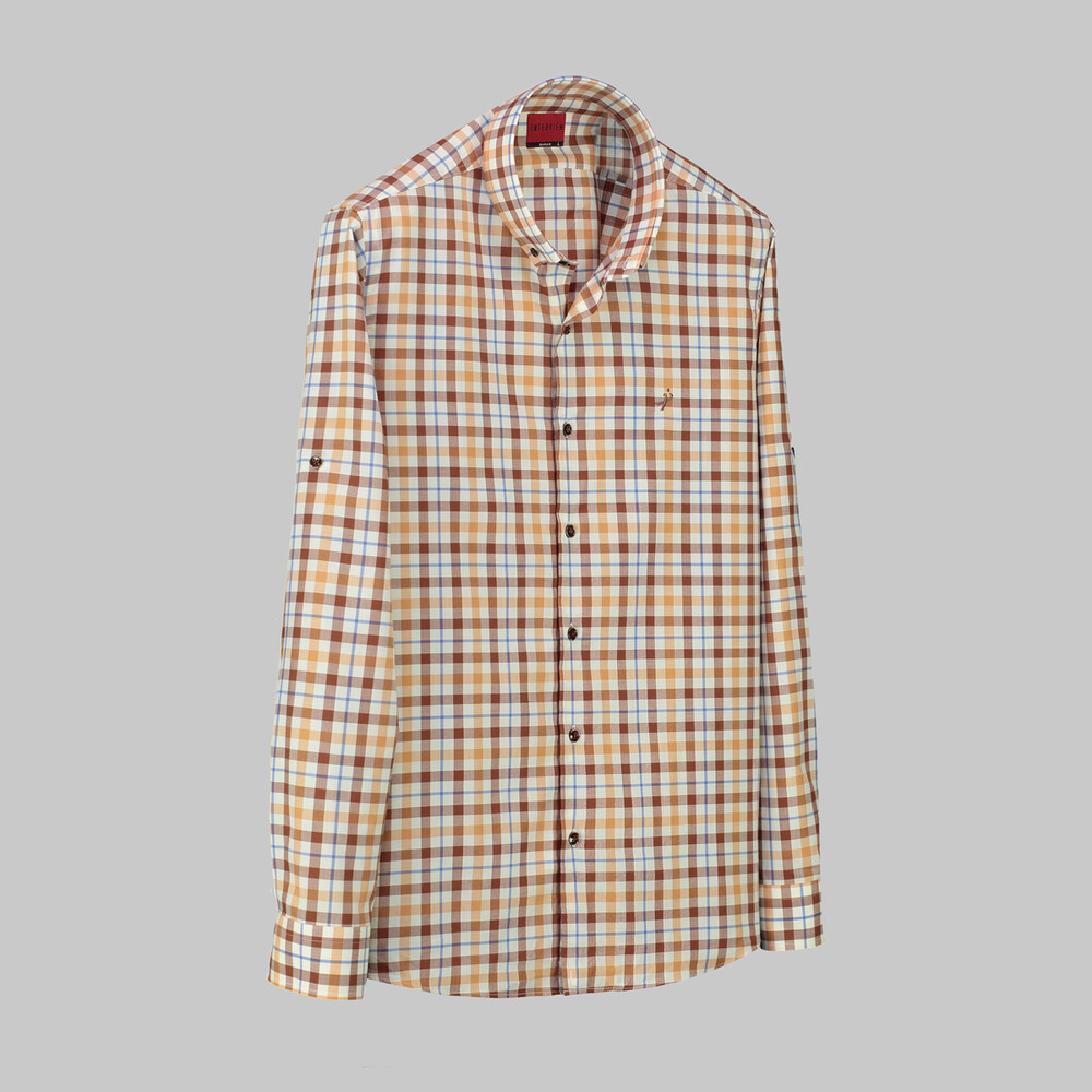 Drew kareli kahverengi gömlek, pamuklu kumaşıyla gün boyu konfor sunar. Şık kareli deseni ve sıcak kahverengi tonu ile hem iş hem de günlük kullanım için idealdir.