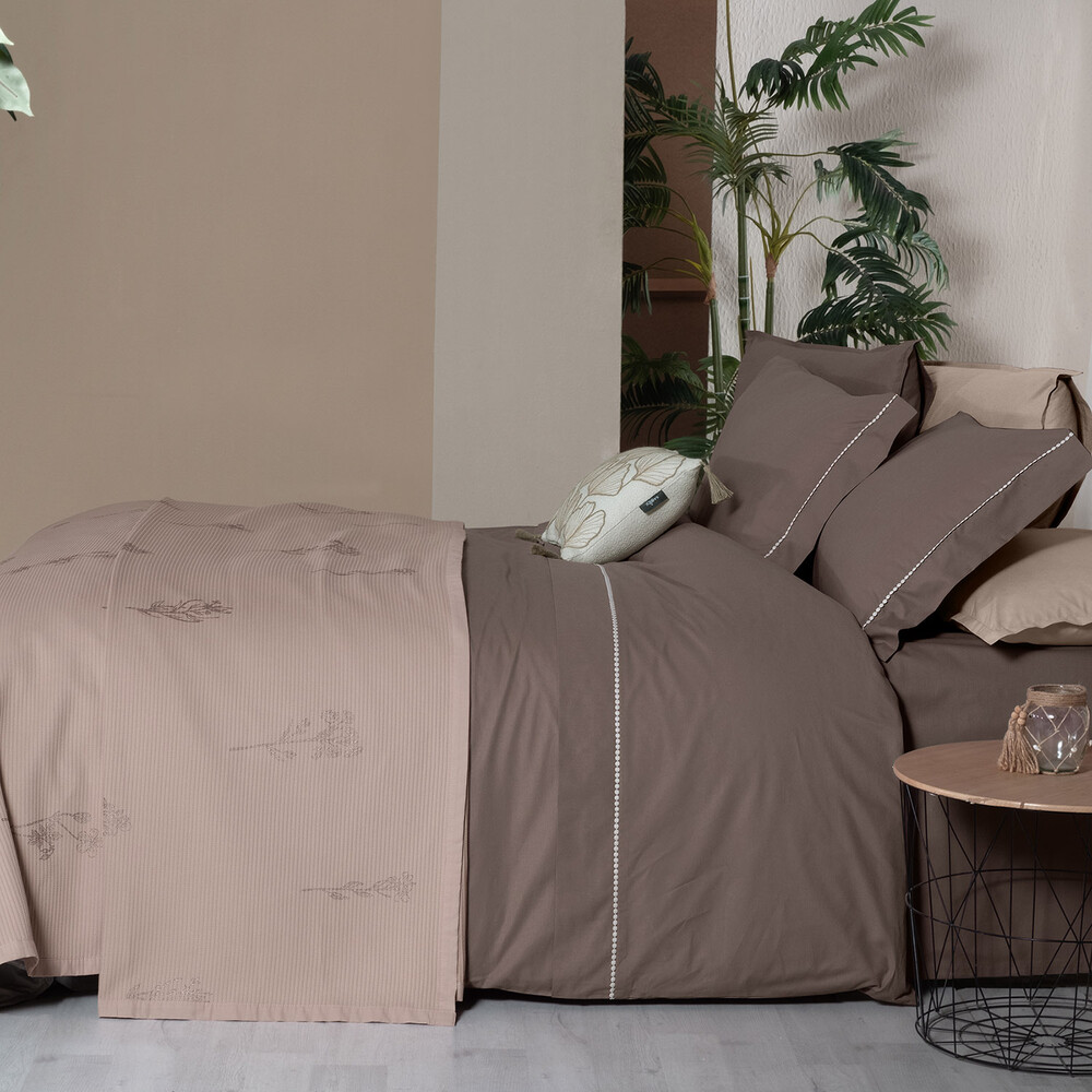 Eva Eldon Pike Takımı ve Nevresim Seti Çift Kişilik Mocha