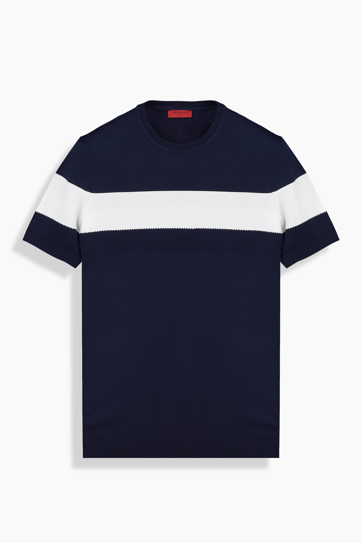 Bisiklet Yaka Lacivert Triko Tişört - 1