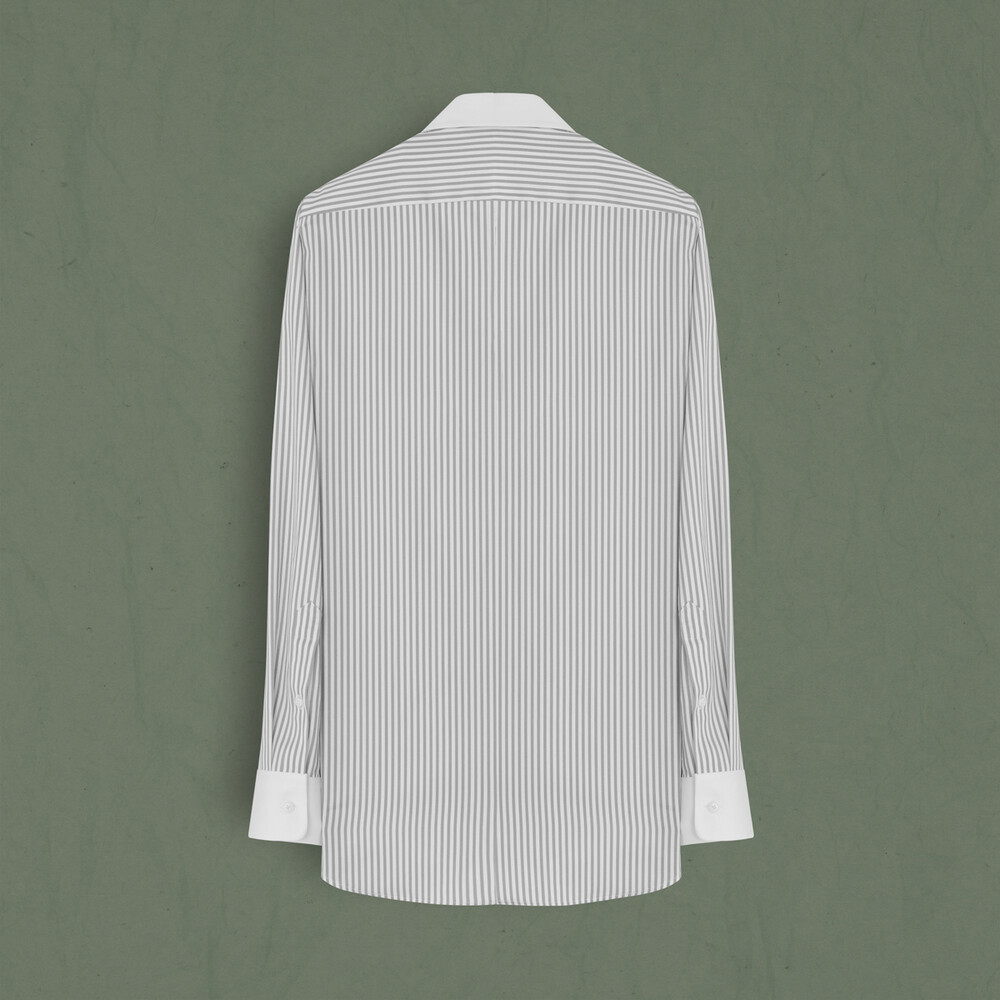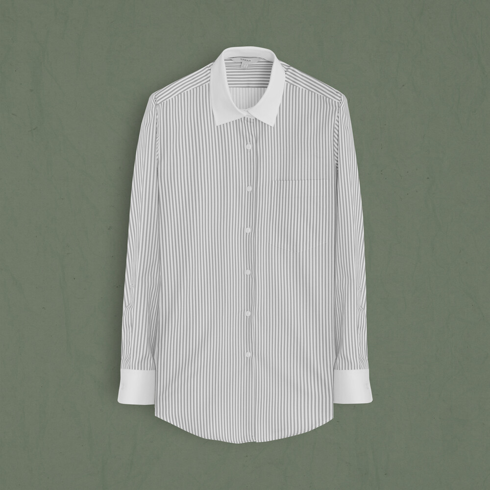 Lidya çizgili açık gri gömlek, farklı rengiyle modern bir duruşa imza atıyor. Gömleği, pantolonla veya denimlerle kombinleyebilirsiniz.