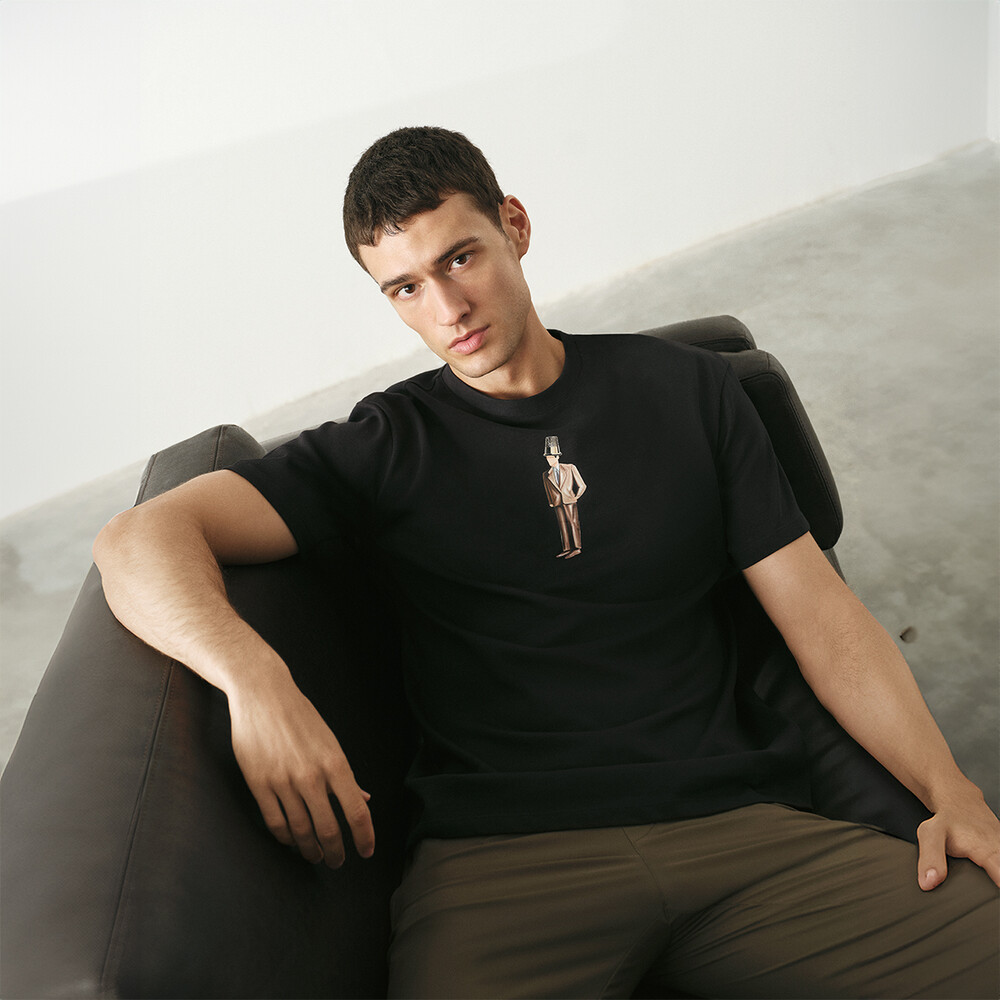 Robin Yayla’nın özgün tasarım anlayışını yansıtan siyah kısa kollu tişört, yüksük ve takım elbise baskı detayları ile fark yaratıyor. Kısa kol kesimi, regular fit kalıbı ve nefes alabilir pamuk yapısıyla gün boyu konfor sağlıyor. Sınırlı sayıda üretilen ve özel koleksiyonda yer alan yüksük adam tişört, hem rahat hem de stil sahibi bir görünüm sunuyor.