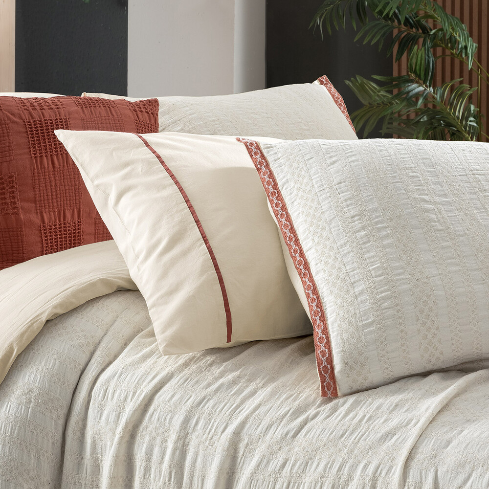 Gelince Haber VerKumaş Kalitesi;%100 Pamuk, jakarlı, yıkamalı nevresim takımı.Yastık kenarlarında oxford dikiş ve dantel detayı bulunuyor.Nevresimde biye detayı mevcut.
