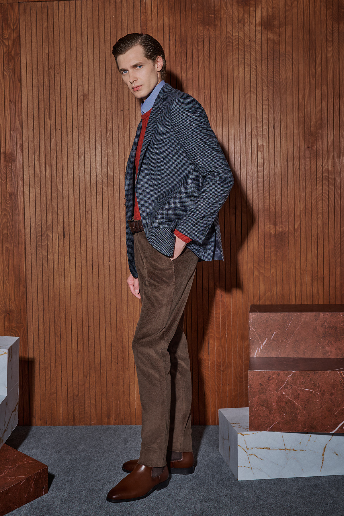 Rexford Desenli Regular Fit Lacivert Ceket, sıcak lacivert tonları ve dikkat çekici deseniyle stilinize derinlik katıyor. Rahat Regular Fit kalıbı sayesinde gün boyu konfor sağlıyor.  Farklı renk seçenekleriyle kişisel zevkinize en uygun kombini oluşturabilirsiniz. Bu ceketi düz renk pantolonlarla birleştirerek hem iş hem de günlük şıklık için çok yönlü bir görünüm elde edebilirsiniz.