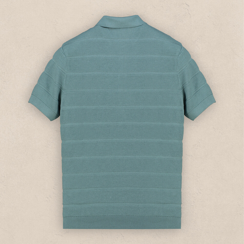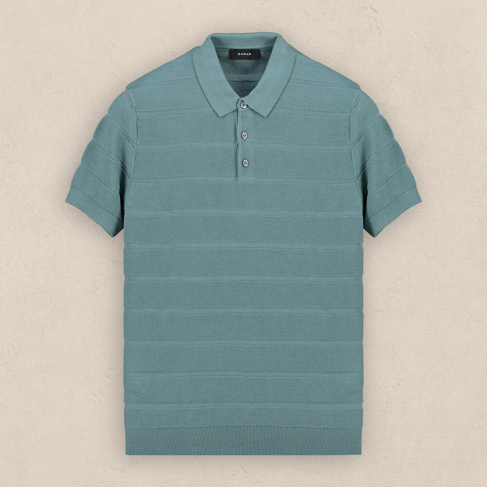 Polo yaka turkuaz tişört,erkek giyiminin vazgeçilmez parçası.Kendinden desenli tasarımı ile dinamik bir şıklık yaşatıyor. Tişörtü denimlerle kombinleyerek sıcak yaz günlerine güçlü bir stil sunabilirsiniz.