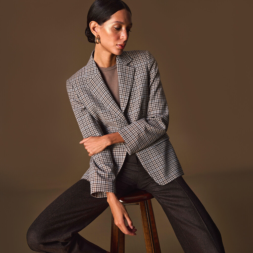 Gelince Haber VerKisha açık kahverengi ceket, zarif kareli deseni ve uzun kesimiyle kadınlara modern bir şıklık sunuyor. Günlük kombinlerde rahatlıkla kullanılabilirken, klasik parçalarla birleştirildiğinde modern bir görünüm sağlıyor. Yumuşak renk tonu, farklı tarzlarla kolayca uyum sağlıyor.