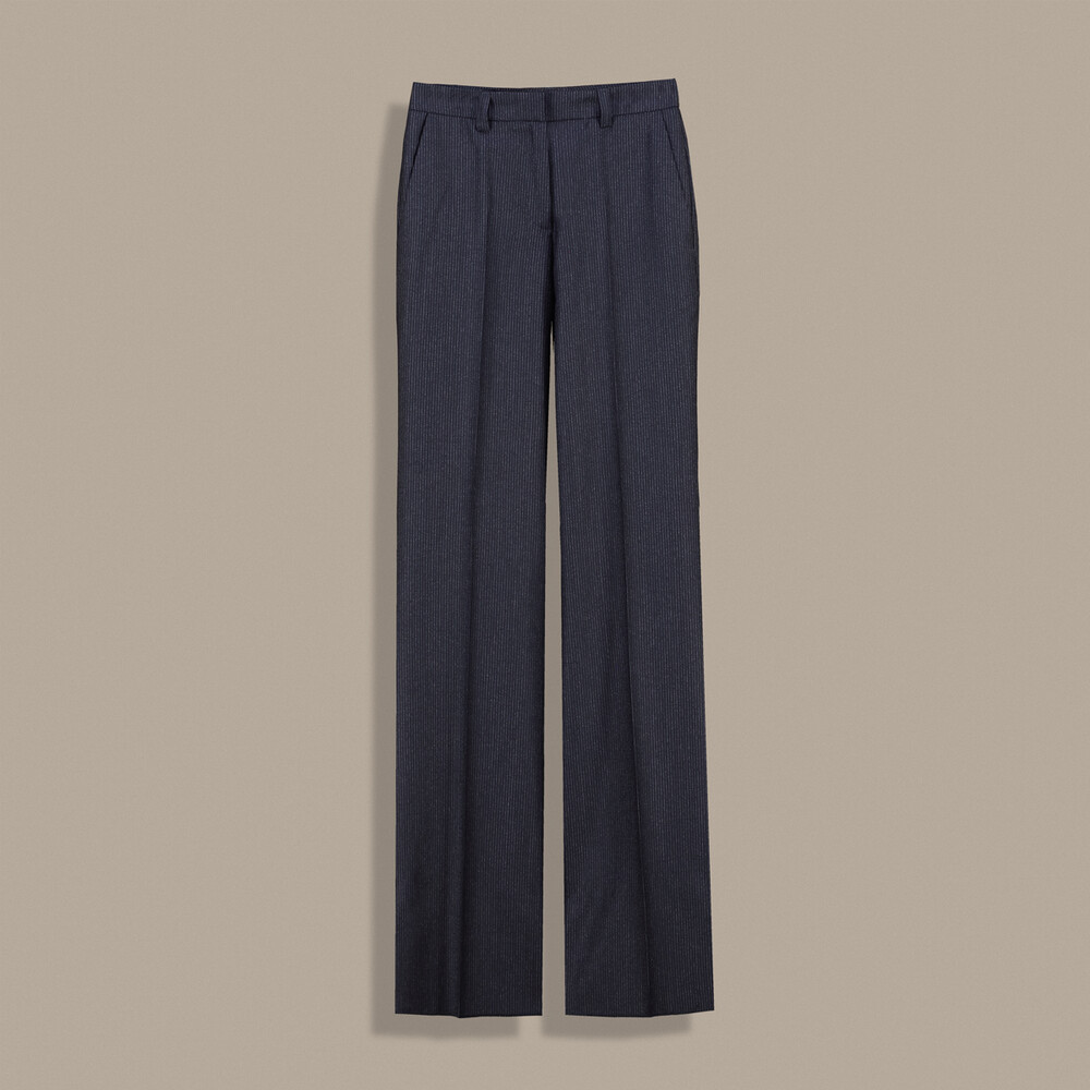 Mara pantolon, çizgili deseni ve geniş paça kesimiyle modern ve şık bir stil sunuyor. Yünlü kumaşı, hem sıcaklık hem de şıklık sağlarken, işten özel davetlere kadar her ortamda rahatlıkla tercih edilebilir.